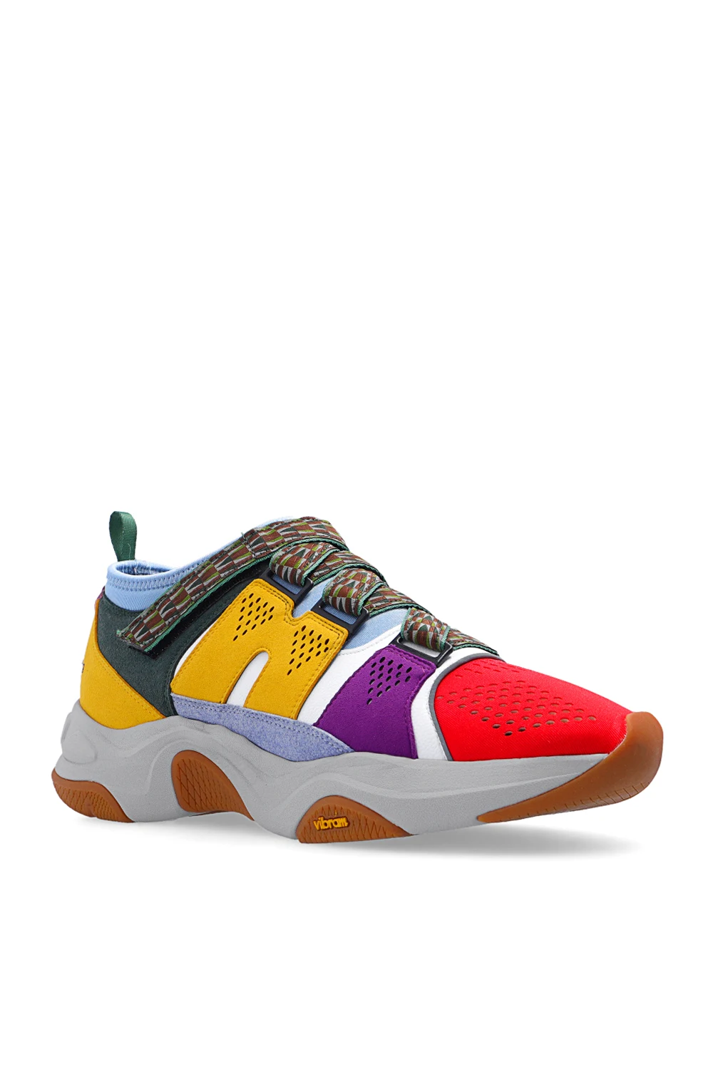Multicoloured sneakers from White Mountaineering. The upper is made of durable mesh and synthetic material which ensure comfort during each step and exceptional endurance to withstand even the most intense hiking trips. Embellished with the brand's logo, this model features velcro closures and a beige and grey Vibram® rubber sole, characterised by excellent grip, durability and abrasion-resistant properties.