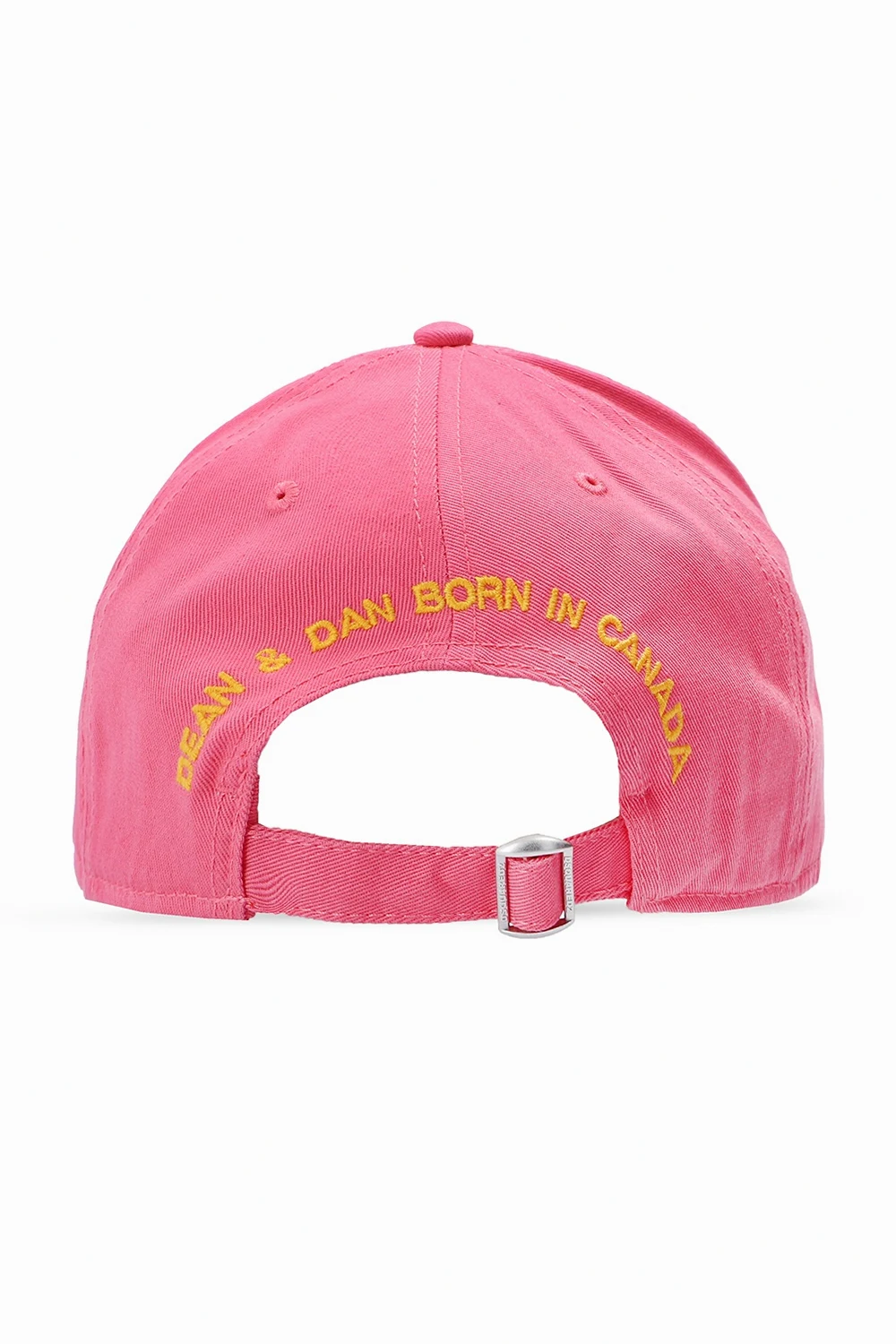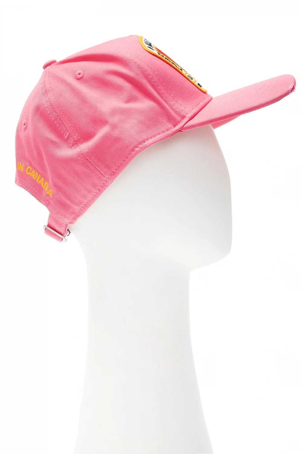 Pink distressed baseball cap from Dsquared2. Crafted from cotton, this item is enriched with a colorful logo patch on the front as well as an embroidered pattern in orange at the back.