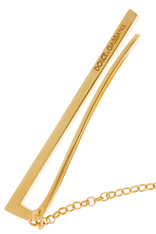 Refined in its simplicity, this tie clip by Dolce & Gabbana redefines modern sophistication. Sculpted with minimalist, linear precision, its slender rectangular silhouette embodies understated luxury while the lustrous gold-toned finish elevates any ensemble with subtle opulence.