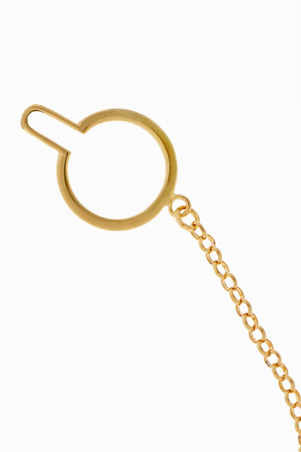 Forged from premium brass , the impeccably smooth surface remains free of adornment—save for the discreetly engraved “Dolce & Gabbana” insignia, a hallmark of the esteemed Italian maison founded by Domenico Dolce and Stefano Gabbana. A fine gold chain with an open circle detail adds both ornament and practical security, enhancing the piece’s distinctive allure.
