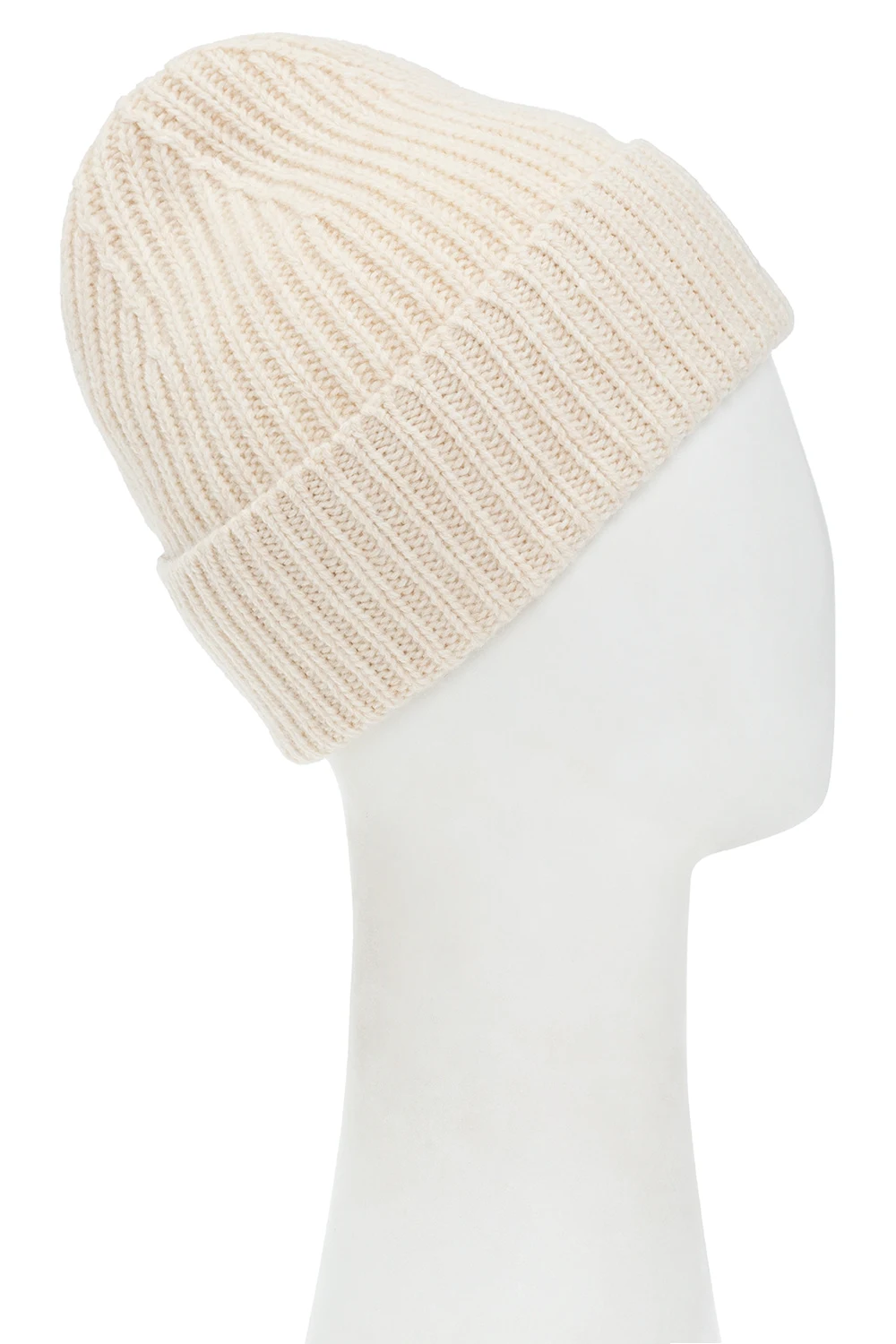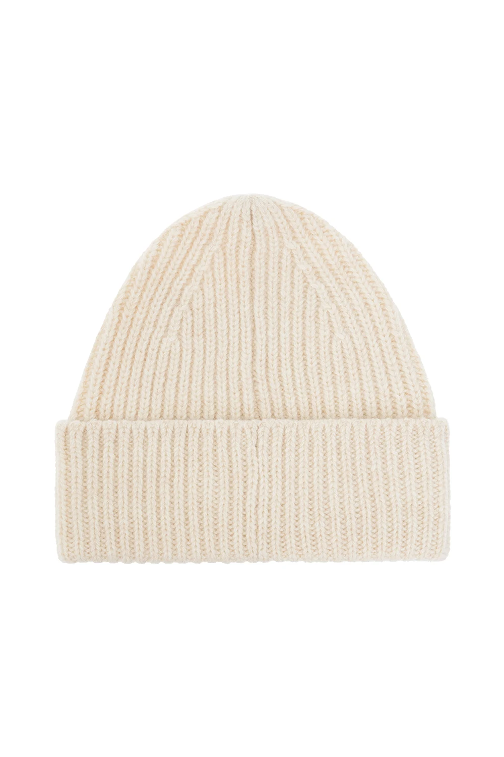 Beige beanie from Acne Studios Kids. Crafted from wool with a rib-knit texture, this item showcases a logo patch.