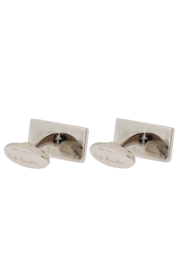 Embrace sophistication with these exquisite cufflinks from the exclusive collection of Paul Smith. Meticulously crafted with a rectangular silhouette, these cufflinks are adorned with vertical, multicolored stripes, imparting a modern and stylish essence.