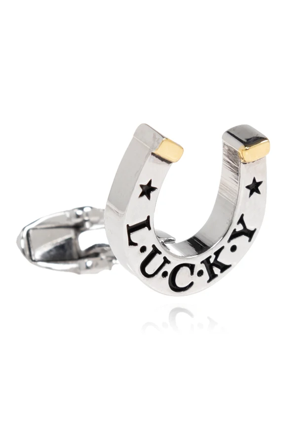 The exterior boasts a bold "LUCKY" inscription, flanked by two striking black stars, while the engraved letters create a captivating contrast—underscoring the elevated nature of this accessory. Rendered with an eye for detail and Paul Smith's iconic eclectic touch, these cufflinks are an inspired choice for those who value individuality and timeless style.