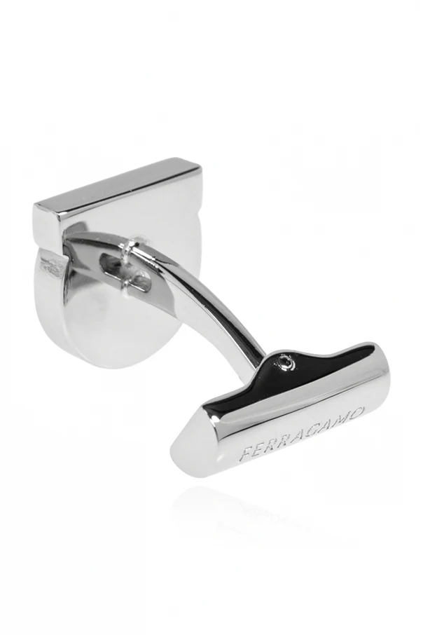 Elevate your formal attire with these FERRAGAMO Cufflinks , exquisitely crafted in a distinctive logo-inspired silhouette. Their refined form—reminiscent of a half-circle with a sleek, linear crest—makes a sophisticated statement without overwhelming the ensemble.