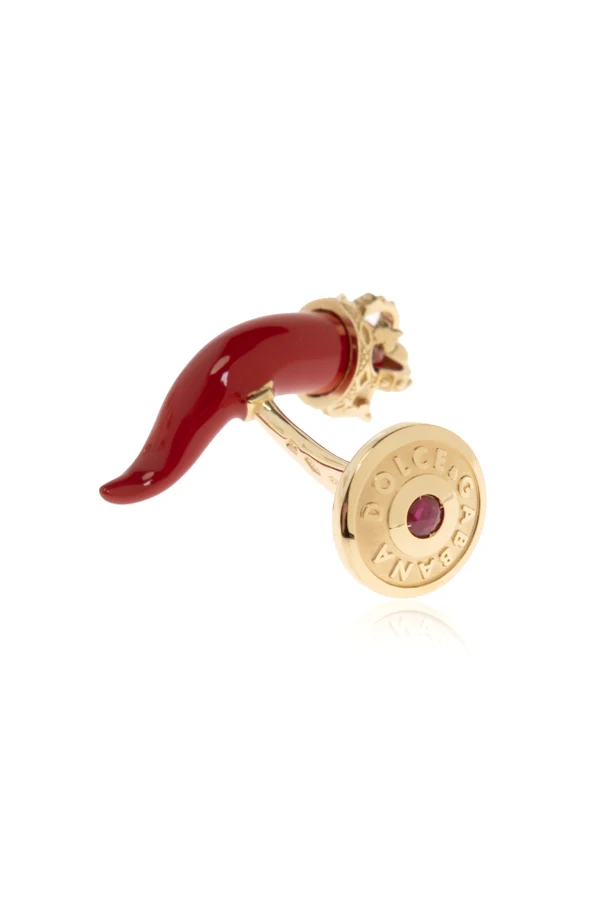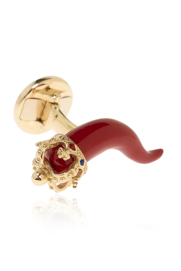 Introducing the Good Luck Gold Cufflinks by Dolce & Gabbana —an exquisite nod to masculine refinement. Sculpted into an arresting curved form reminiscent of a horn or chili pepper, these cufflinks captivate with their distinctive silhouette and singular character.