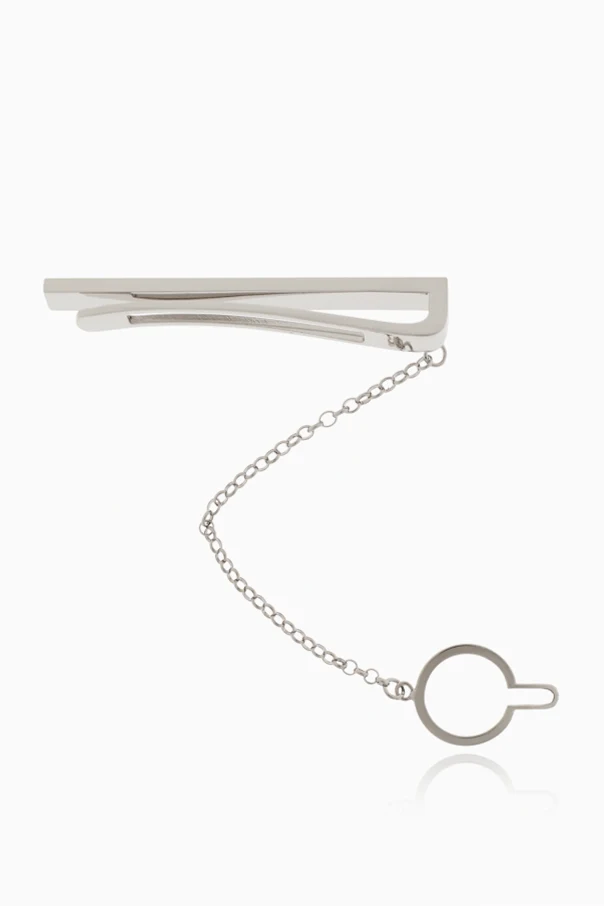 The tie clip’s flawlessly smooth surface is gently accented by a subtly engraved designer logo at the tip, exemplifying understated luxury. Its addition of a delicate chain and circular ring, designed to attach discreetly to a shirt button, ensures your tie remains elegantly in place—an unmistakable hallmark of high-caliber craftsmanship.