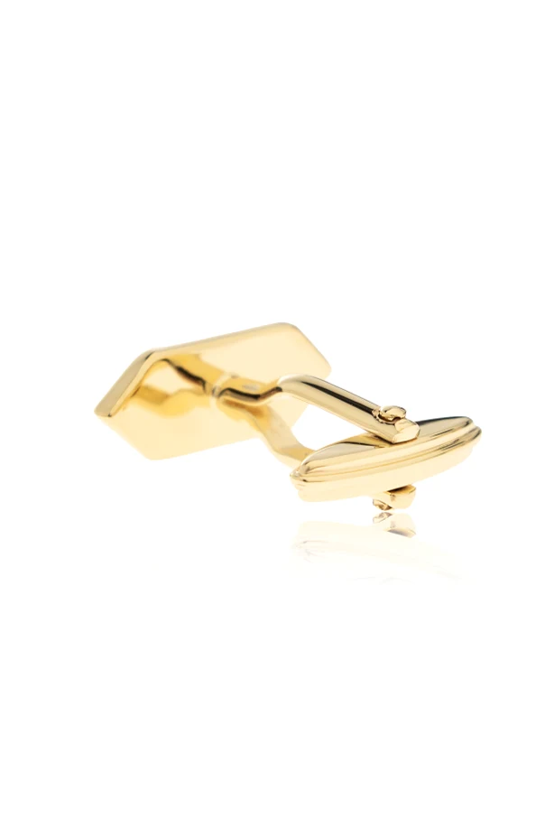 Discover refined sophistication with these exclusive golden cufflinks from the esteemed house of LANVIN . Rendered in lustrous, high-polish brass, each piece showcases a distinctive geometric silhouette with sharply defined, multifaceted edges, balancing contemporary artistry with timeless appeal.