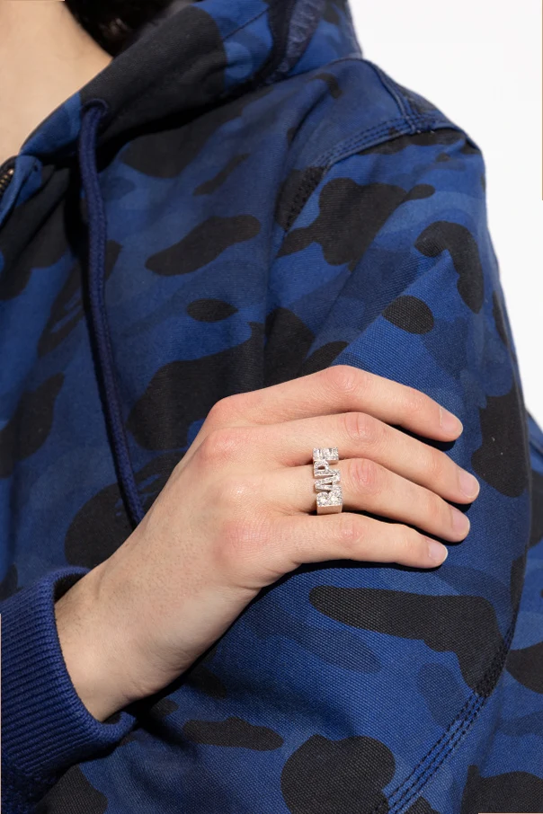 Impeccably adorned with shimmering, diamond-like stones, each intricately embedded letter captures light with a refined brilliance, accentuating the piece’s exclusive character. The iconic logo not only pays homage to the revered streetwear house but also transforms this ring into a statement of individuality and prestige.