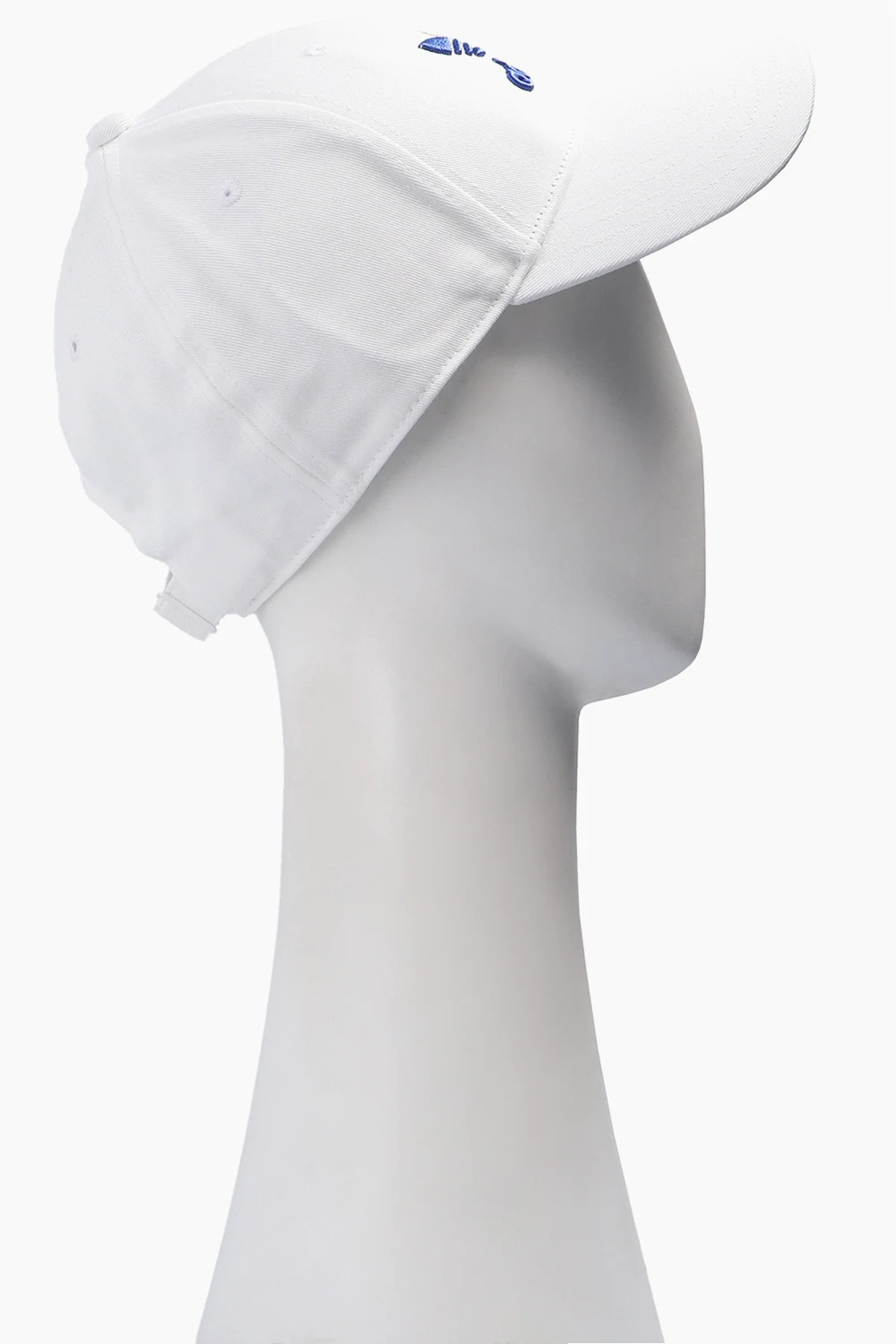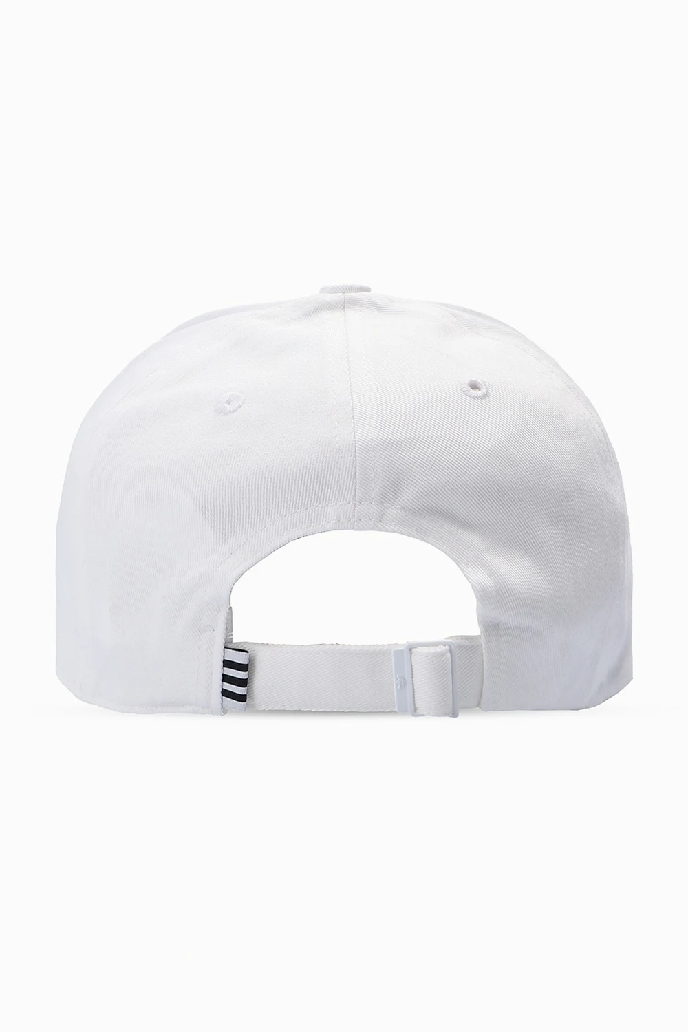 White baseball cap from ADIDAS Originals. Embroidered with the brand's iconic trefoil logo in blue, white and red, this cotton-crafted piece of headwear is complete with a buckle strap on the back.