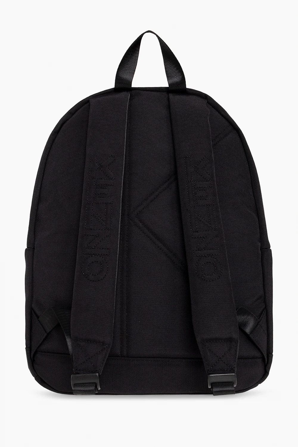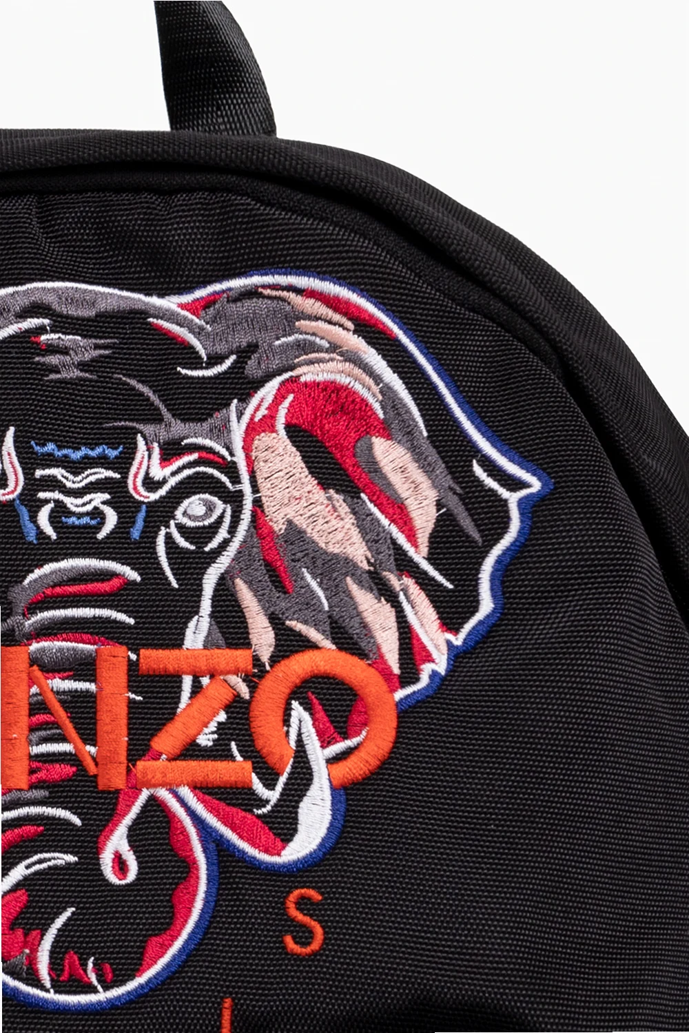 Black backpack from Kenzo Kids. Embellished with an animal motif accompanied by a logo, this design features a zip fastening, a zip front pocket, a half-round handle, adjustable shoulder straps, black metal hardware and one internal compartment with a zip pocket.