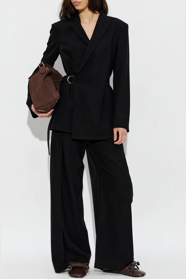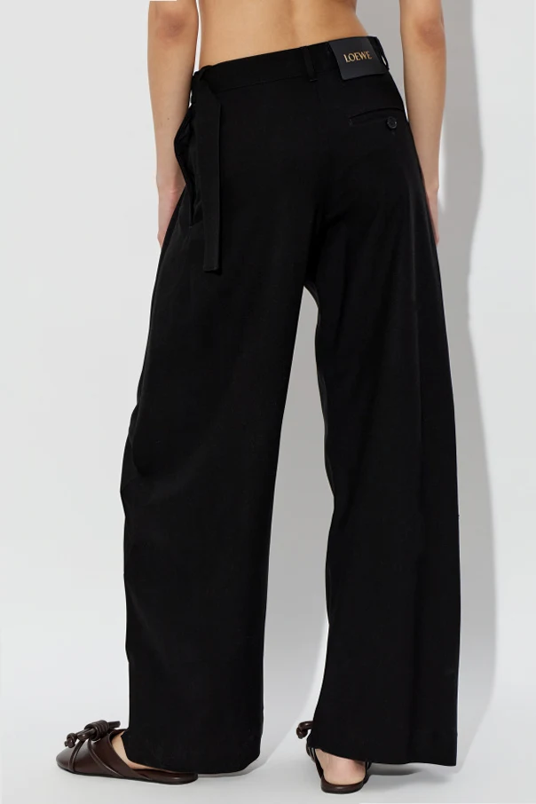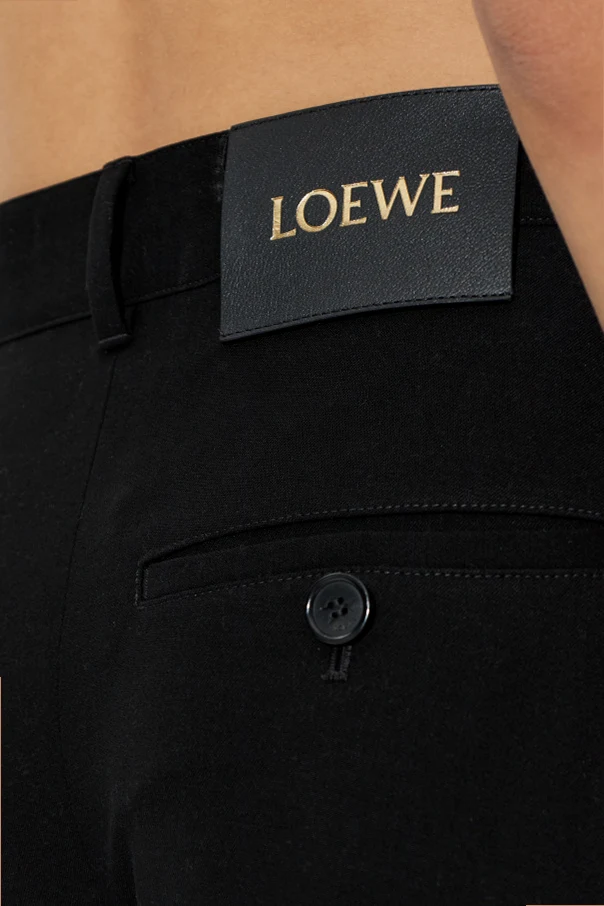 Thoughtful details, such as elegant front pleats and an integrated belt with a polished D-ring closure, highlight the trousers’ tailored excellence. A discreet flap pocket on the back, secured with a button, provides practical finesse, while the signature LOEWE logo patch subtly affirms the piece's distinguished heritage.