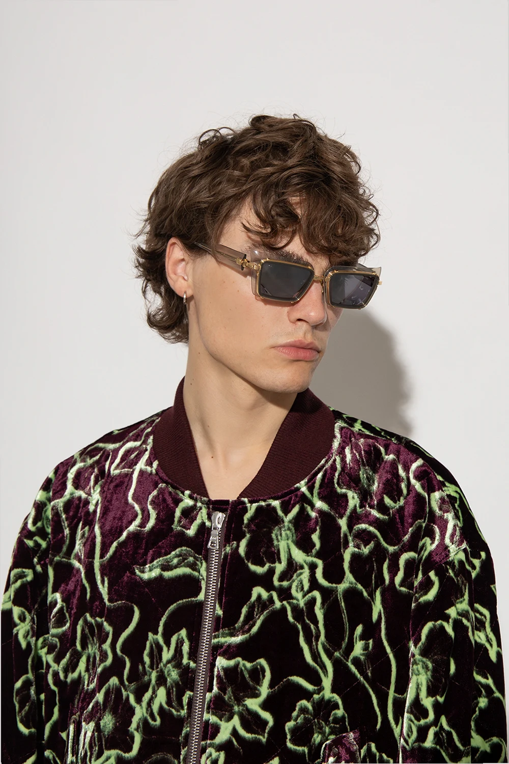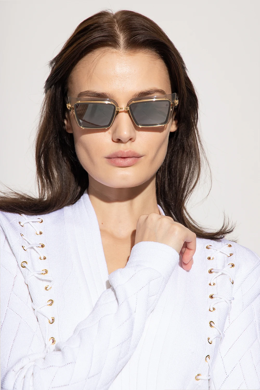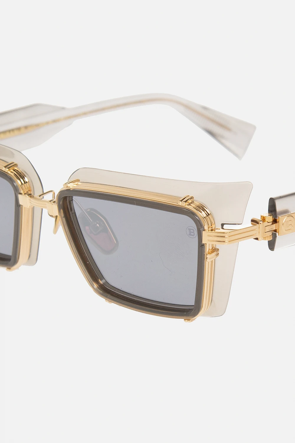 Light grey ‘Admirable’ sheer sunglasses from Balmain. This pair features gold-tone titanium elements, rectangular frames, logo on the temples and grey lenses with a mirror effect, anti-reflective coating and 100% UV protection. Comes with a case.