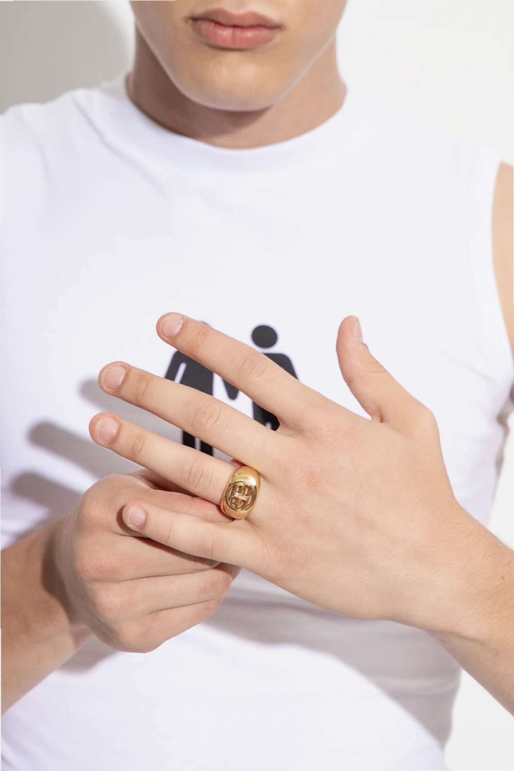 Gold-tone ring with a BB logo from Balenciaga. Made of brass.