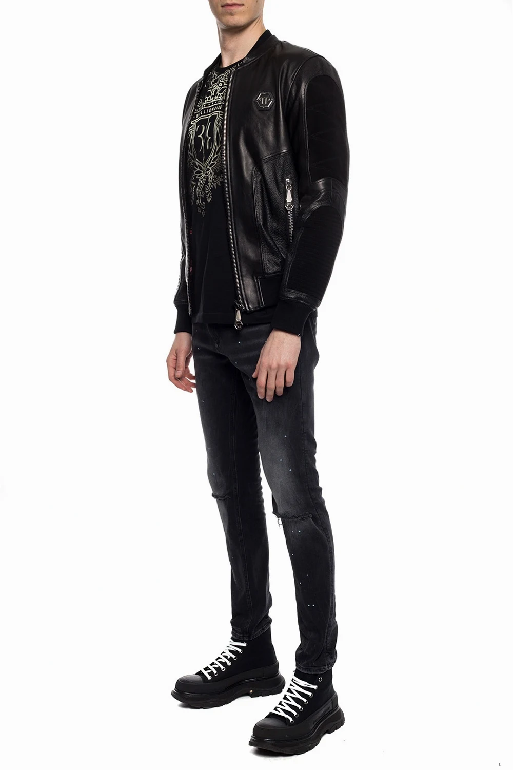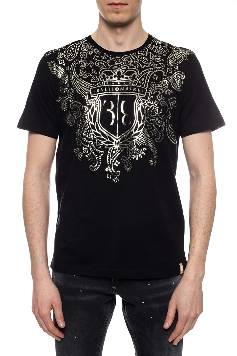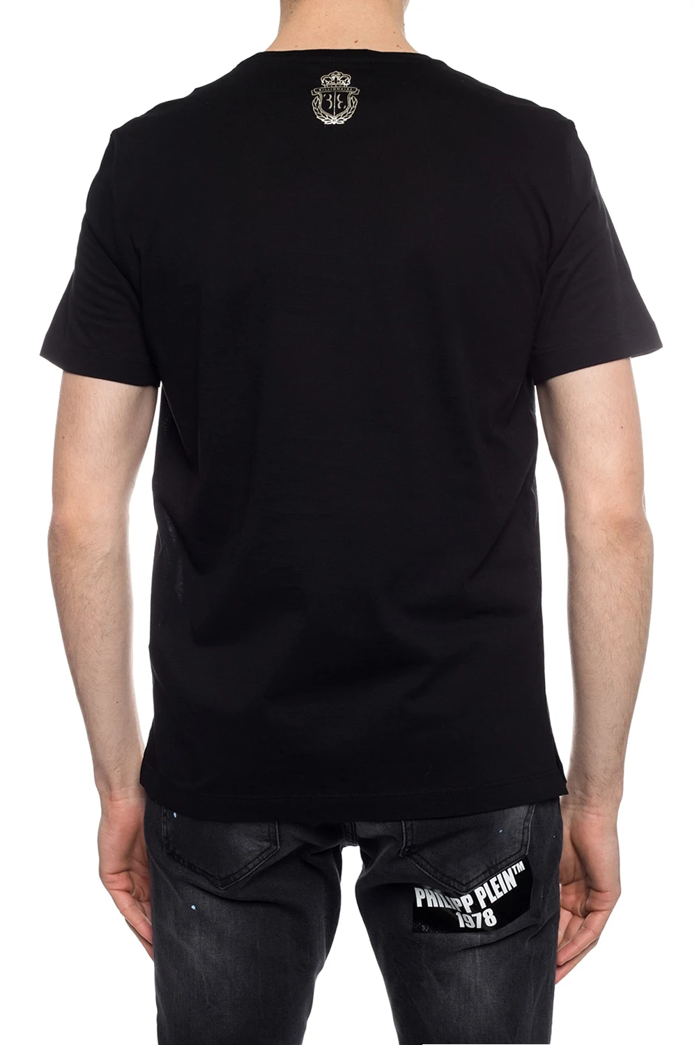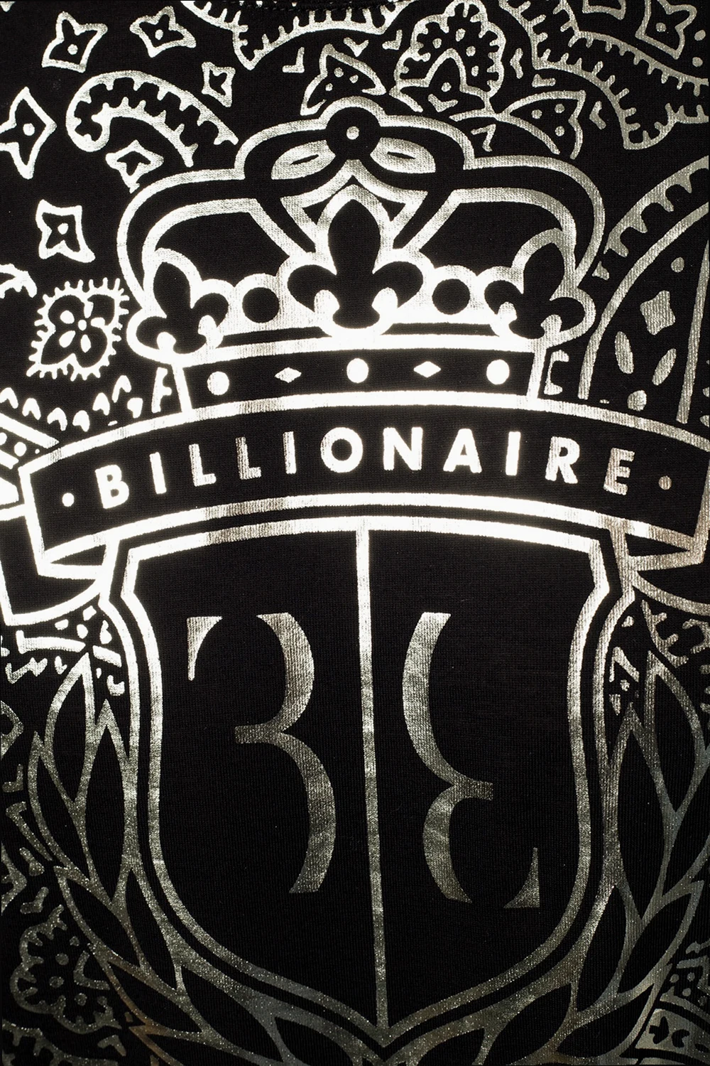 Black T-shirt from Billionaire. Made of cotton. Decorated with a silver-tone print. Round neck.