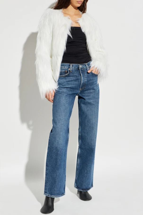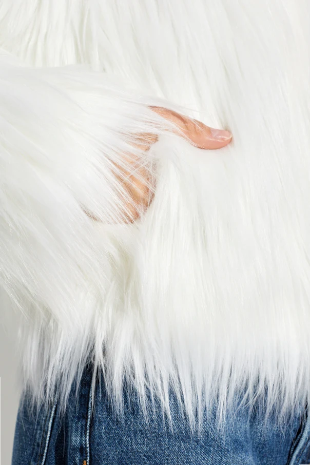 Embrace refined sophistication with the Eilish Faux Fur Jacket by STAND STUDIO. Inspired by Scandinavian minimalism, this piece embodies understated luxury with its sleek, collarless silhouette and hip-length, slightly loose fit. The jacket is crafted from premium faux fur, distinguished by long, lustrous fibers that catch the light, lending an exquisite and tactile sense of opulence.