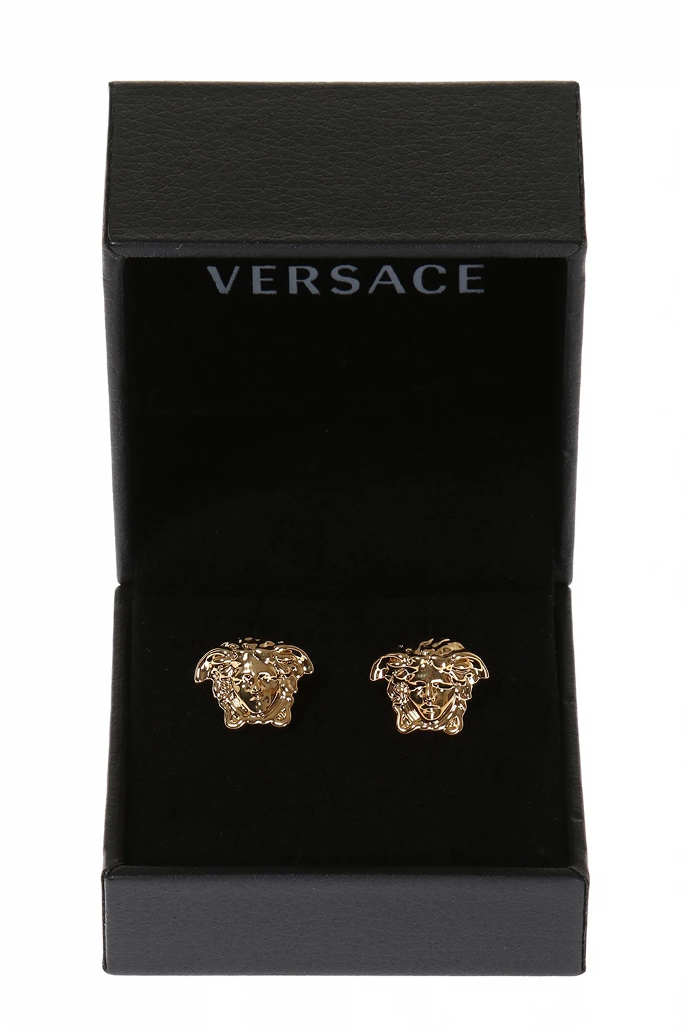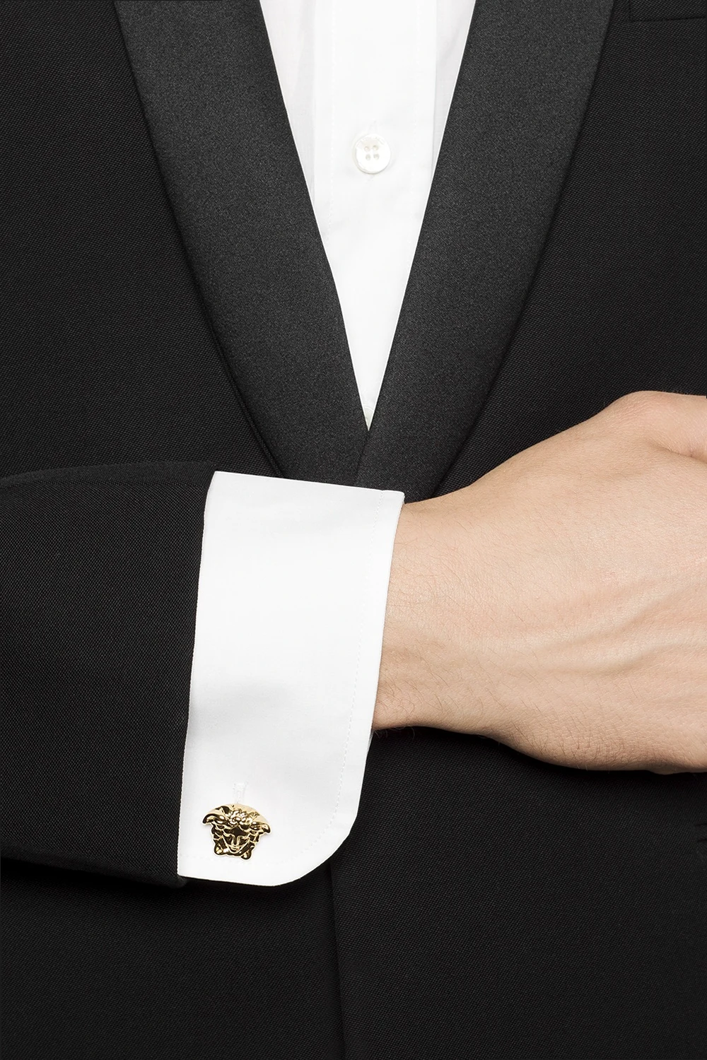 Medusa head-shaped cuff links from Versace. Made of gold-tone metal.