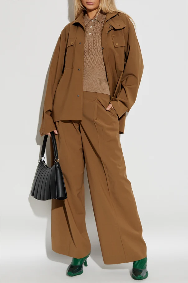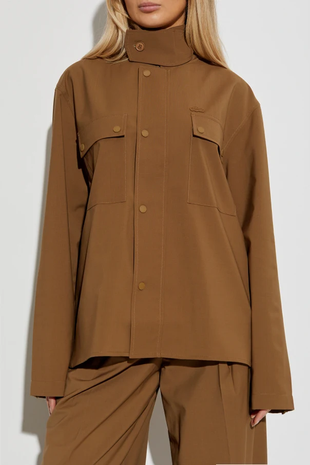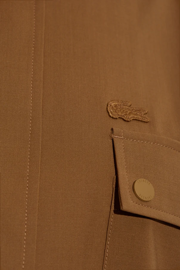 Elevate your outerwear collection with this brown stand-collar jacket by LACOSTE RUNWAY . Crafted from a refined blend of fine wool, resilient polyester, and supple elastane, this piece delivers a sophisticated balance of structure and comfort. Its loose, slightly oversized silhouette is complemented by gently dropped shoulders and a gracefully extended, boxy profile, creating a modern statement in effortless style. The distinctive high collar , secured with a sleek button, lends a contemporary edge while ensuring warmth and versatility. Discreet snap fasteners across the front enhance the jacket’s minimalist aesthetic , while two spacious flap pockets on the chest offer both utility and visual intrigue. A subtle, embroidered designer logo at the chest—a mark of understated exclusivity—adds a final, refined touch. Why choose this product? Exceptional material blend for luxurious comfort Innovative silhouette, perfect for elevated casual ensembles Distinctive stand-collar with secure button closure Functional and stylish snap-fastened chest pockets Elegant, subtly branded design exclusive to LACOSTE RUNWAY