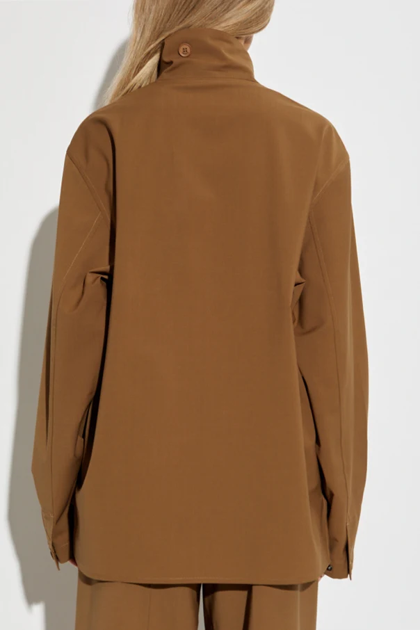 BROWN Jacket with stand-up collar