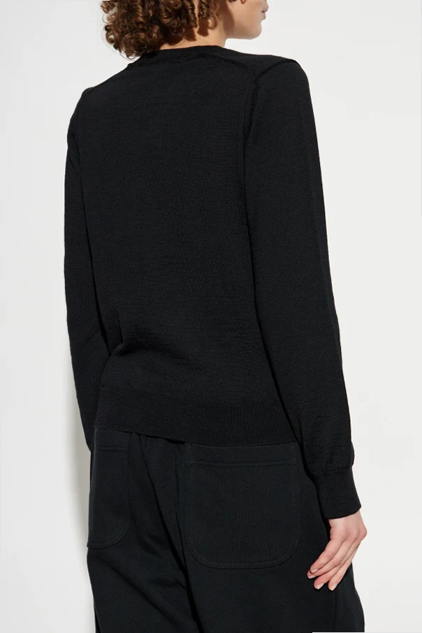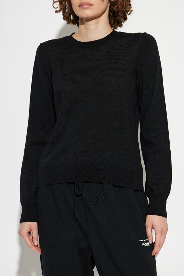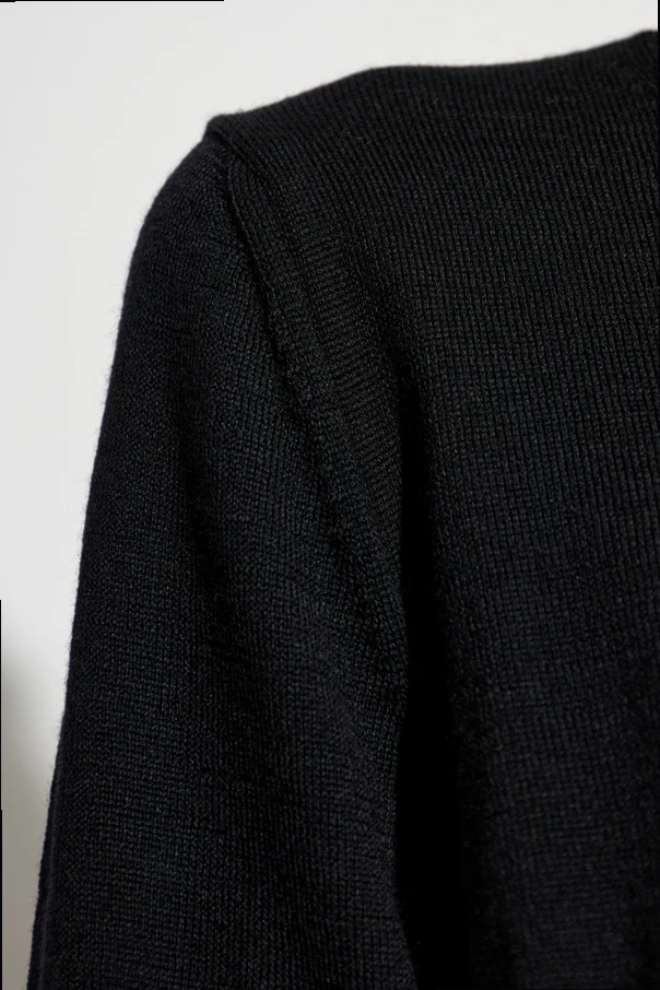 Elevate your wardrobe with this timeless black wool sweater from CDG by Comme des Garçons . Meticulously crafted from finely knitted, high-quality wool, this sweater exudes understated sophistication. Its classic, slightly tailored silhouette with a crew neck and full-length sleeves offers a flattering fit that gracefully skims the hips. The sweater’s smooth, densely woven texture, free from prints or embellishments, underscores its refined simplicity. Pristinely ribbed cuffs, hem, and neckline lend subtle structure and a premium finish, while the logo-free design ensures versatile elegance for any occasion. Why choose this product? Exquisite craftsmanship using superior natural wool Elegant, minimalist aesthetic suited for any ensemble Luxurious comfort and lightweight warmth Discreet, logo-free styling for timeless sophistication