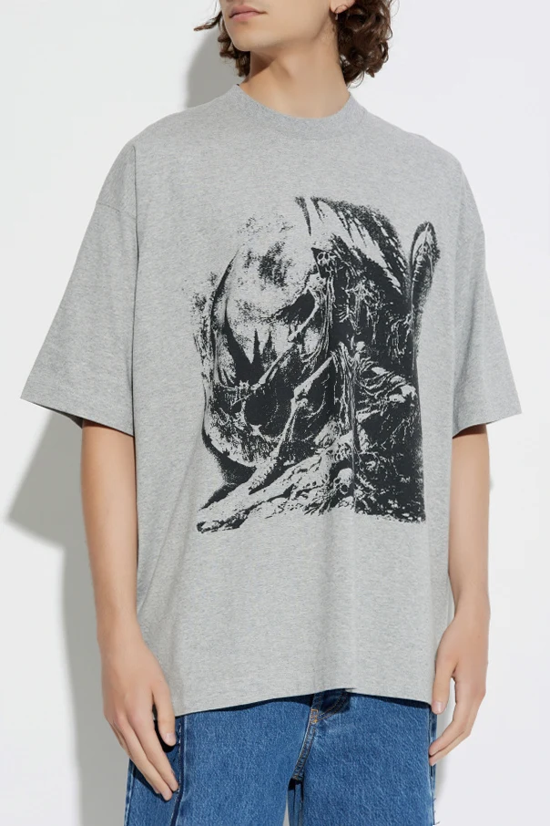 Experience distinctive sophistication with this VETEMENTS Printed T-shirt , meticulously crafted from premium, medium-weight cotton, renowned for its remarkable comfort and refined texture. The relaxed, slightly oversized silhouette features a classic crew neckline and short sleeves, adapting seamlessly to both contemporary and timeless wardrobes.