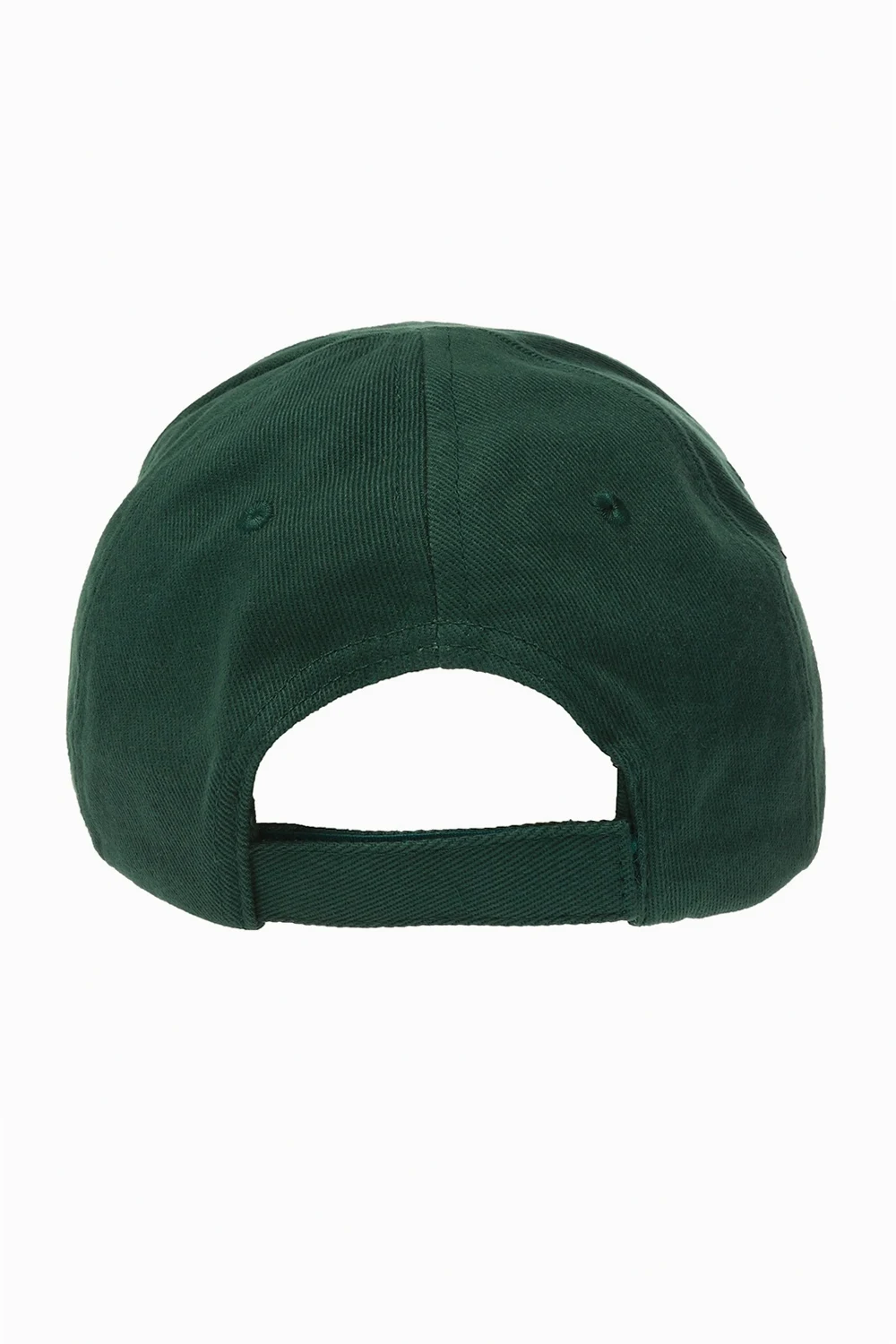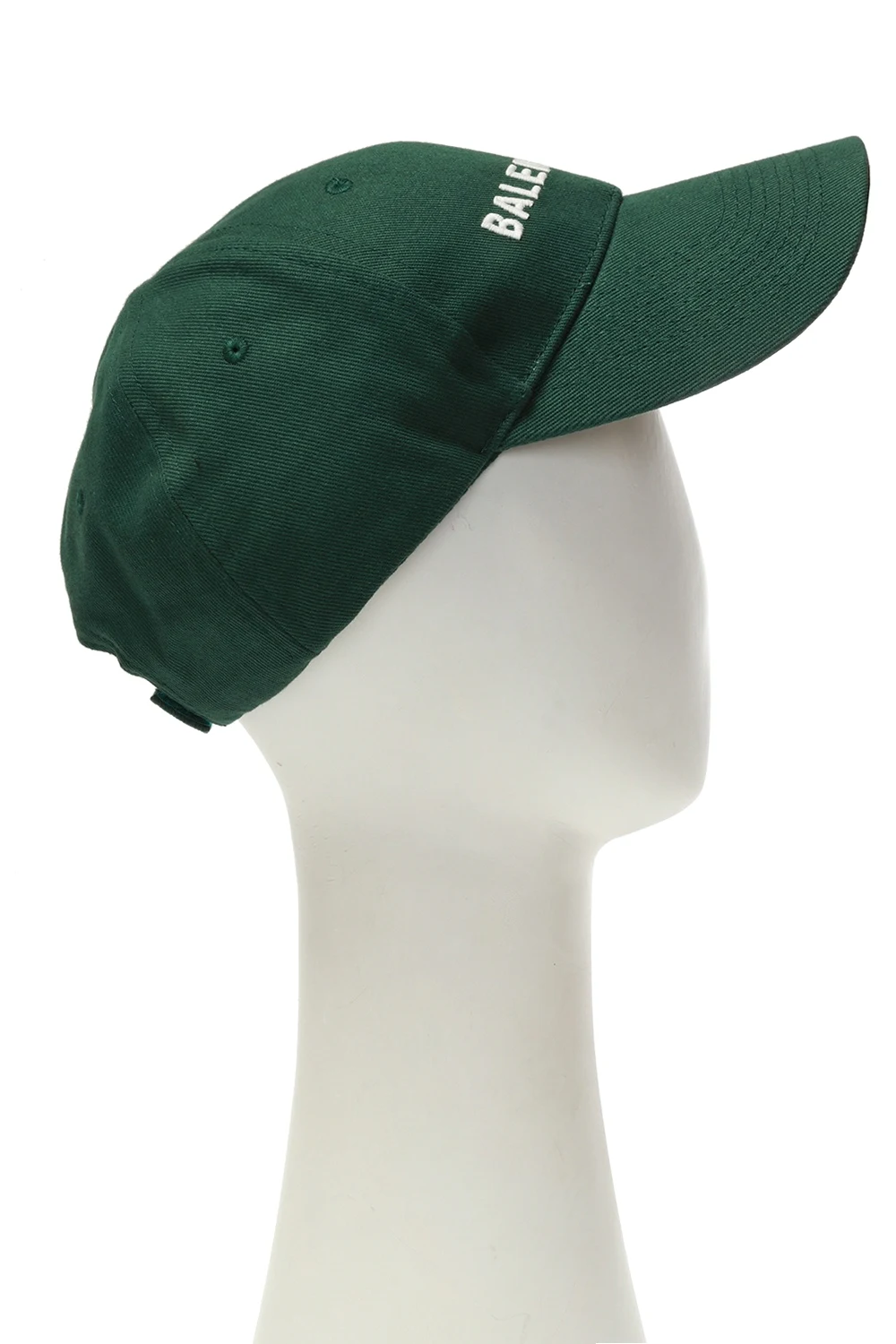 Green baseball cap with a logo from Balenciaga. Made of cotton. Decorated with white logo embroidery. Adjustable strap.