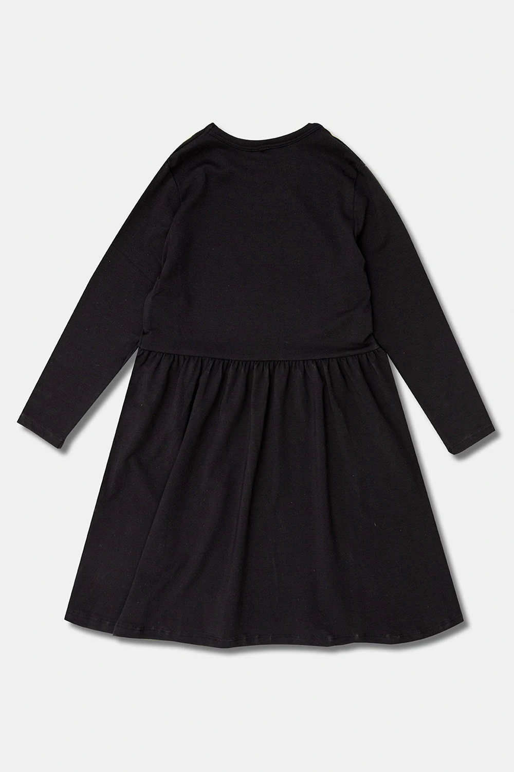 Black dress from Mini Rodini. Made from soft TENCEL™ lyocell, this style features a round neck, long sleeves and a logo patch on the front.