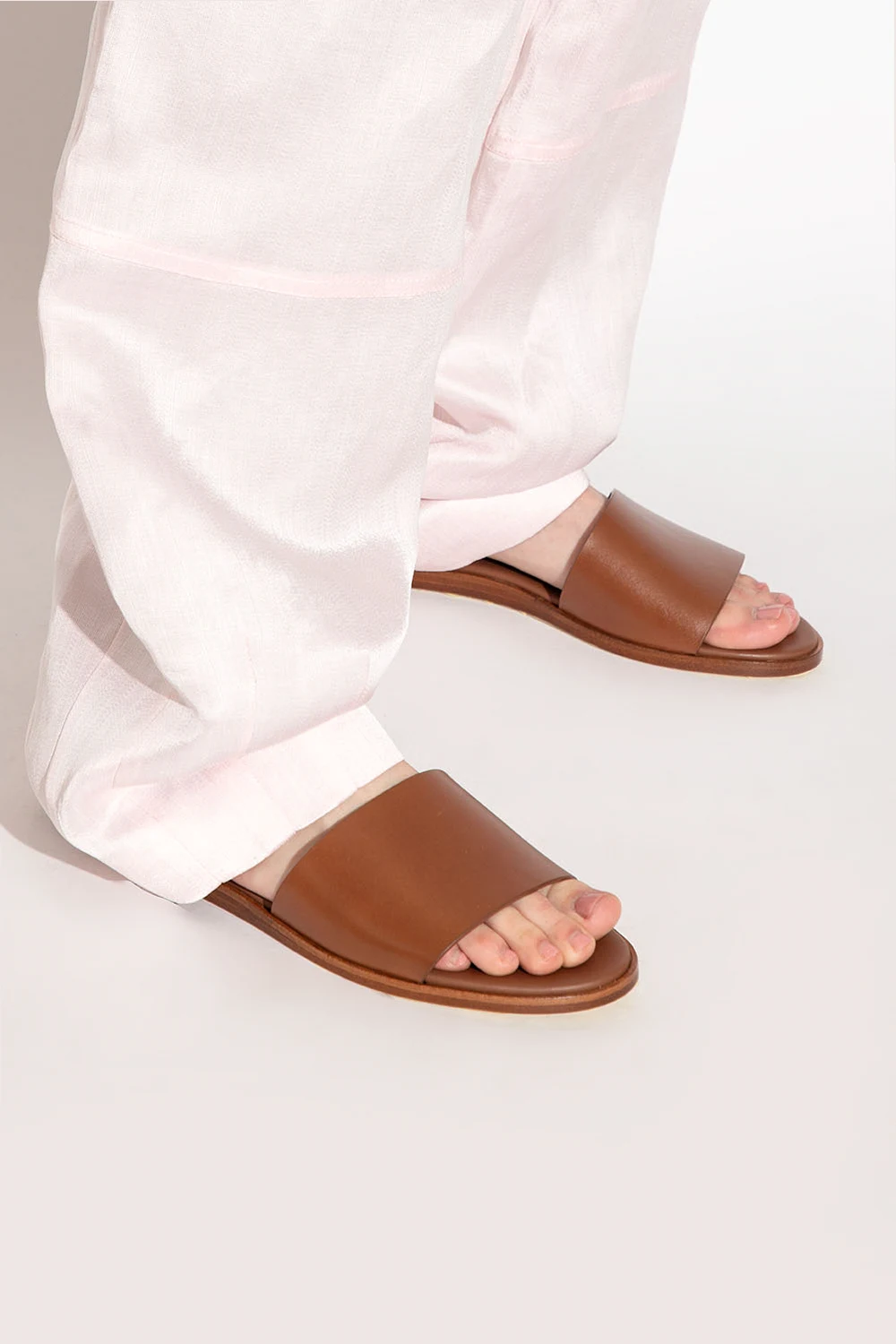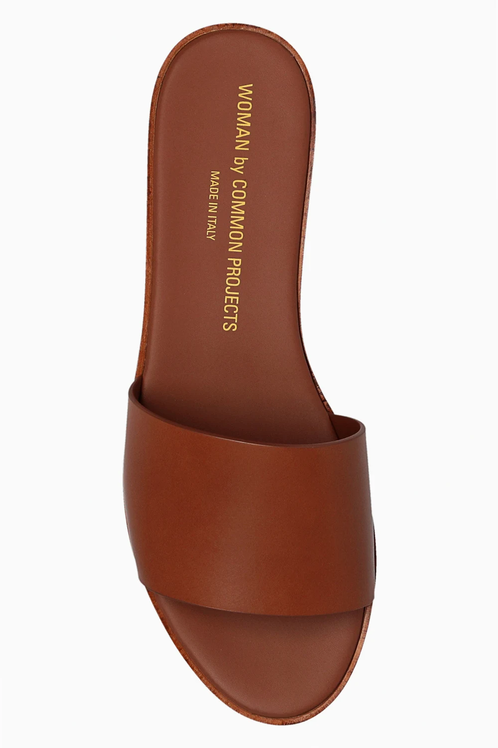 Brown slides with a beige leather sole from Common Projects. Made of leather.