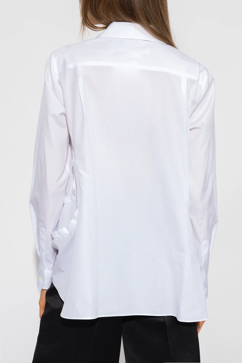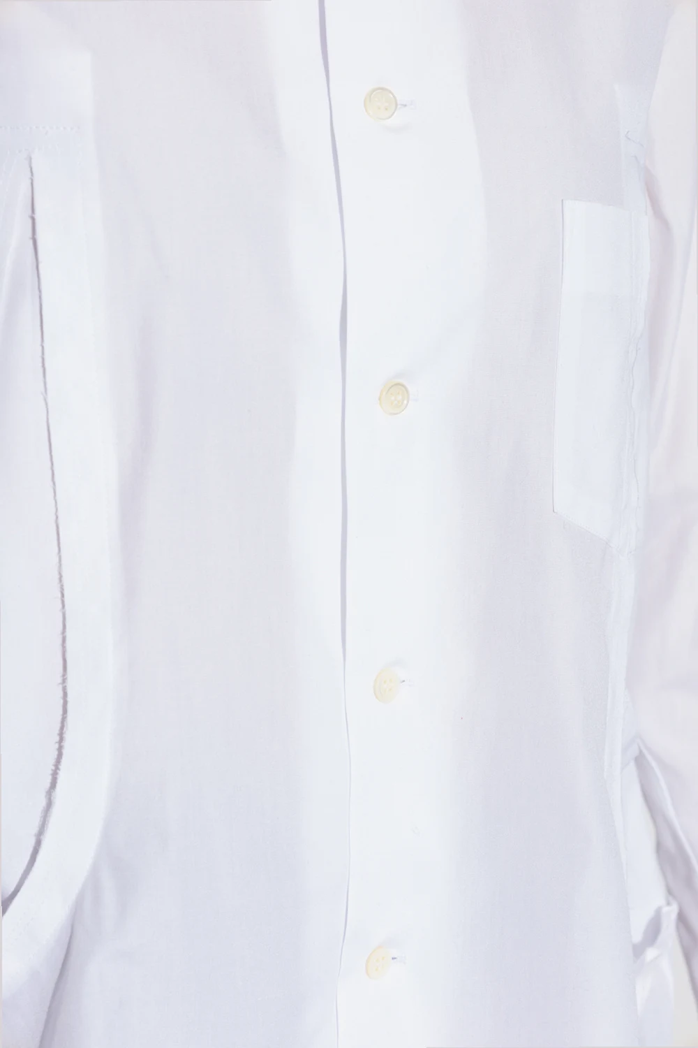 White shirt from CDG by Comme Des Garçons. Made of cotton, this style features a classic fit with raw cut-outs for added volume. It has button fastenings, a rounded collar and long sleeves with button cuffs.