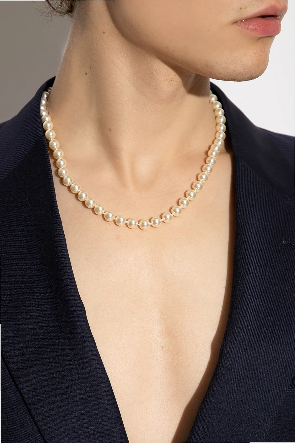 Cream and silver-tone necklace from Vivienne Westwood. Composed of glass pearls, this item features a lobster clasp fastening with an attached logo-engraved application.