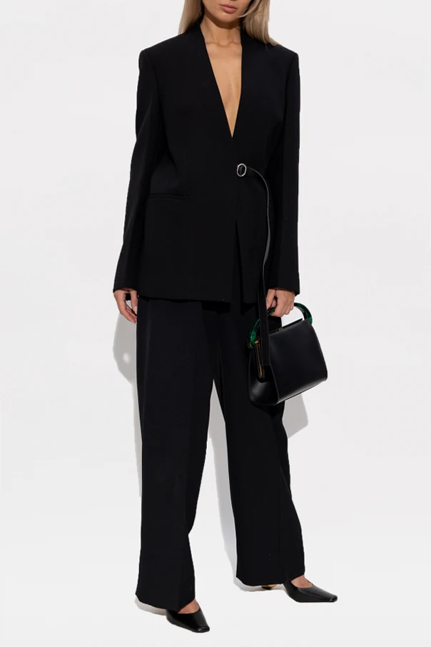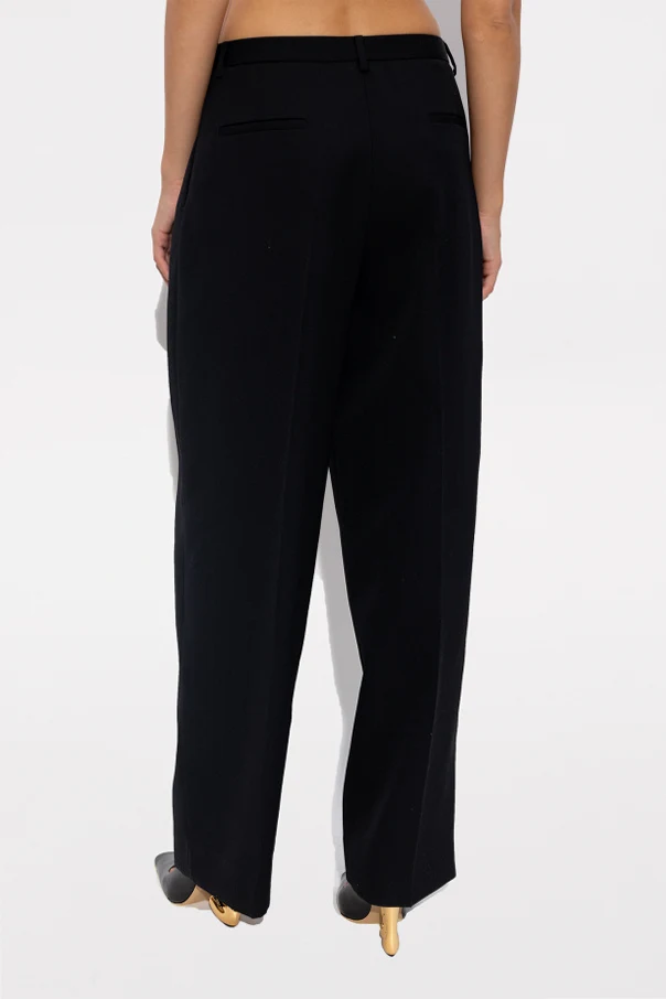 Black trousers from JIL SANDER. Made from wool, this pair features a zip fly with hook & eye closures, four slip pockets and an attached belt.