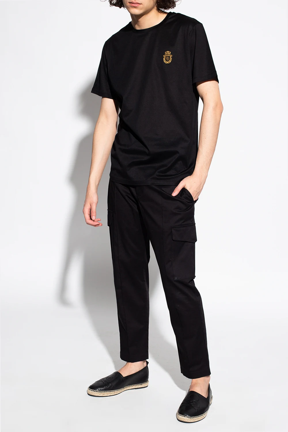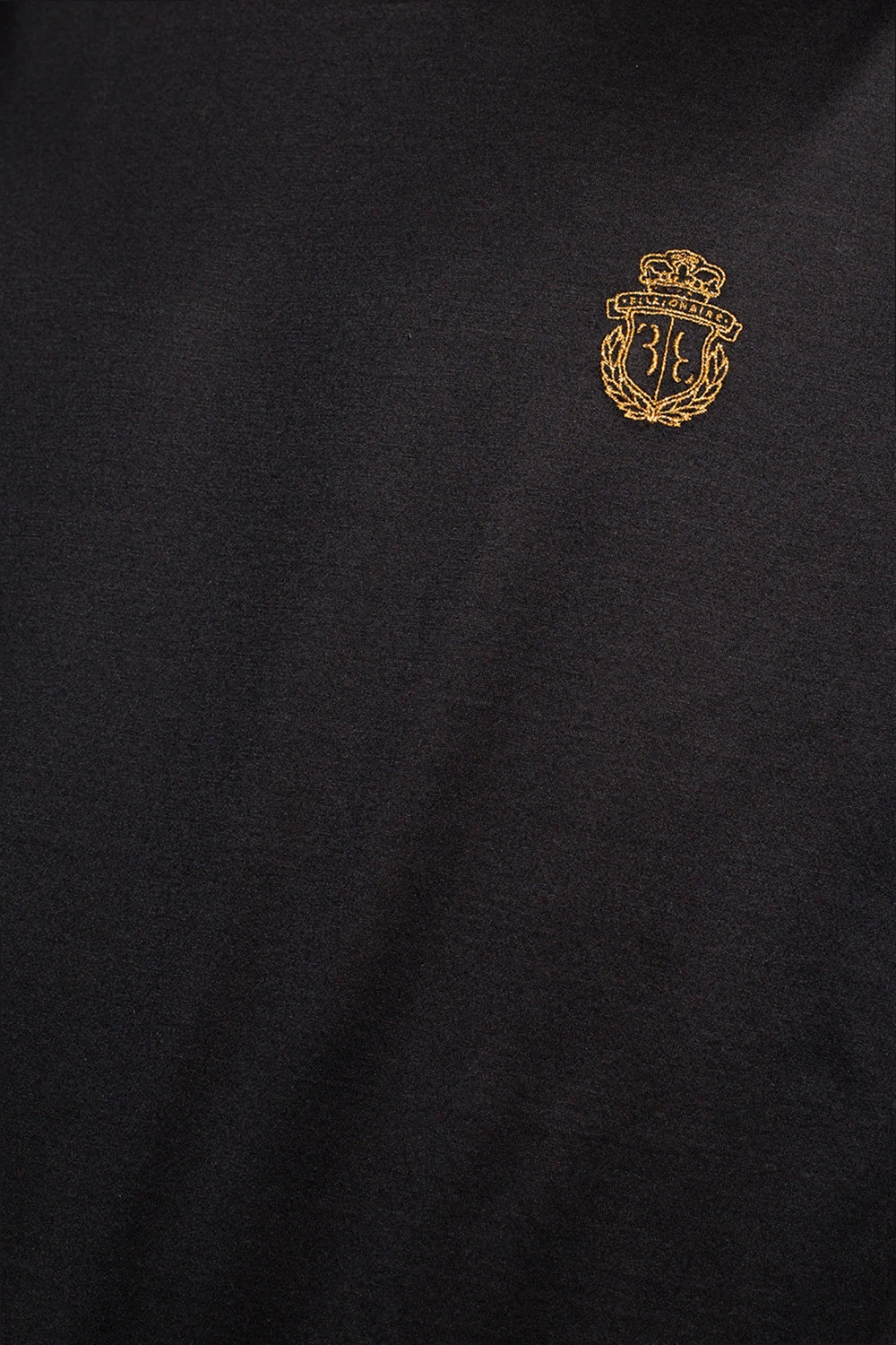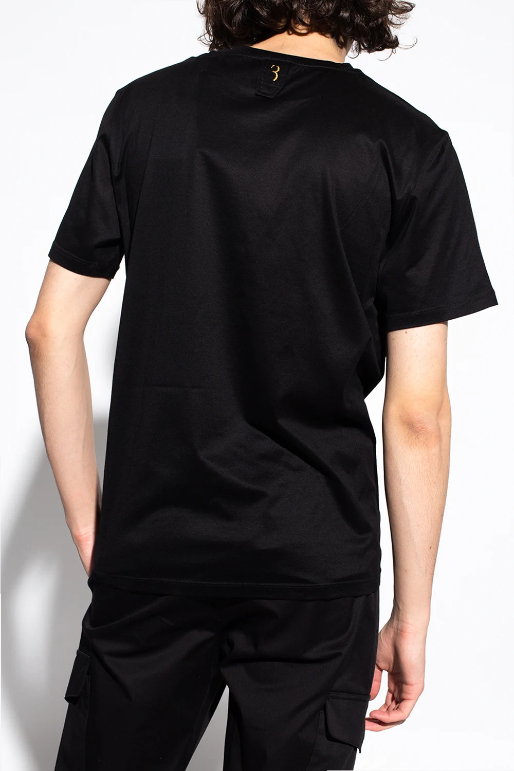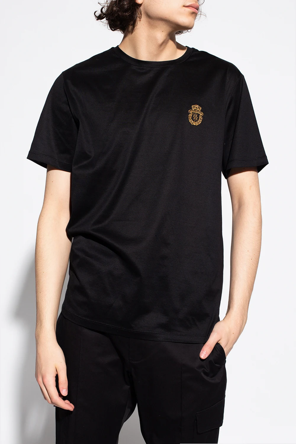 Black T-shirt from Billionaire. Made of cotton, this short sleeve design features a gold-tone and black logo patch and a ribbed round neck.