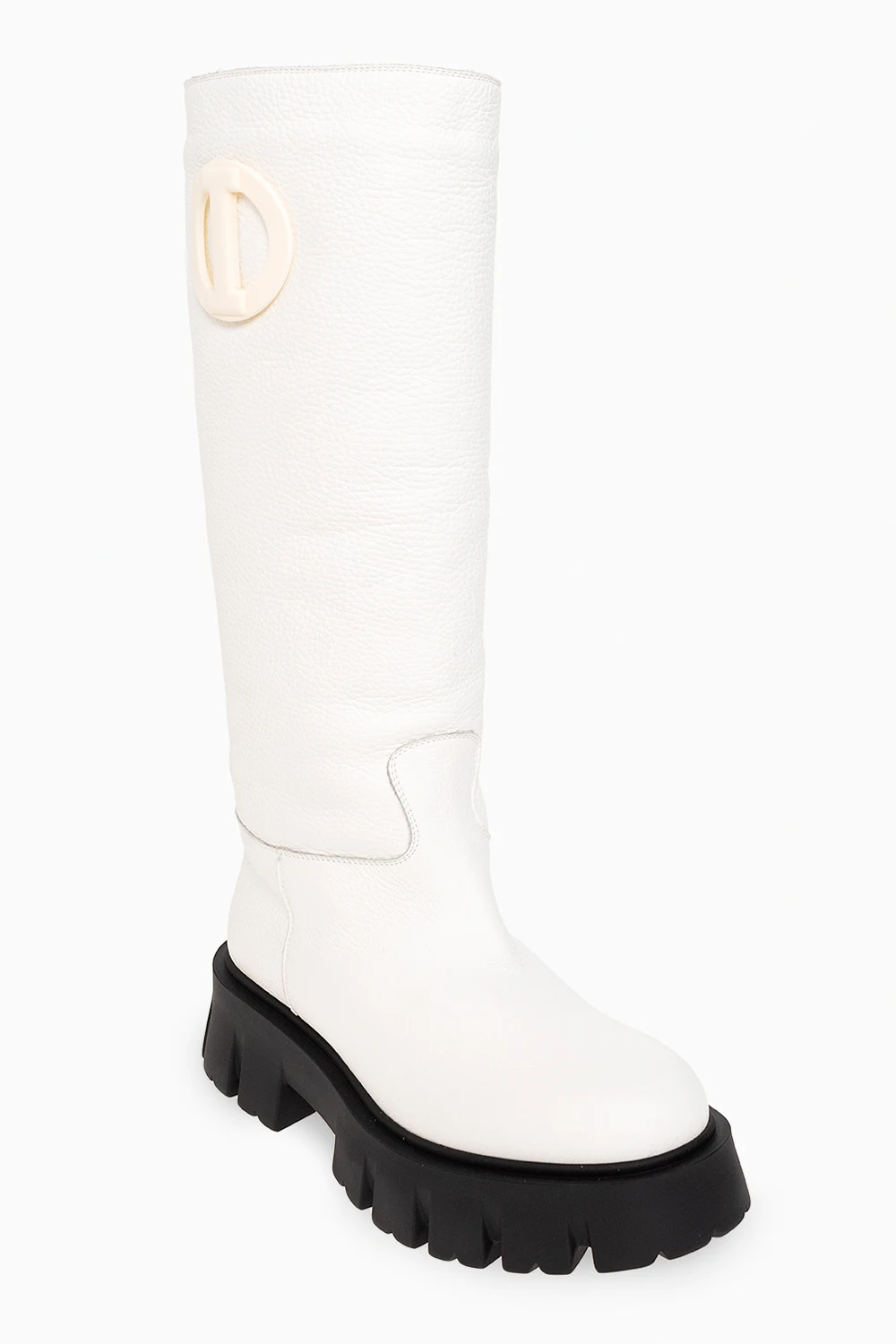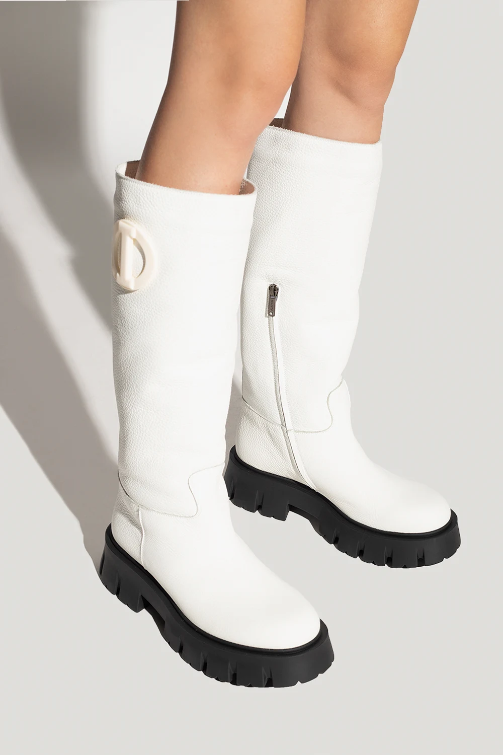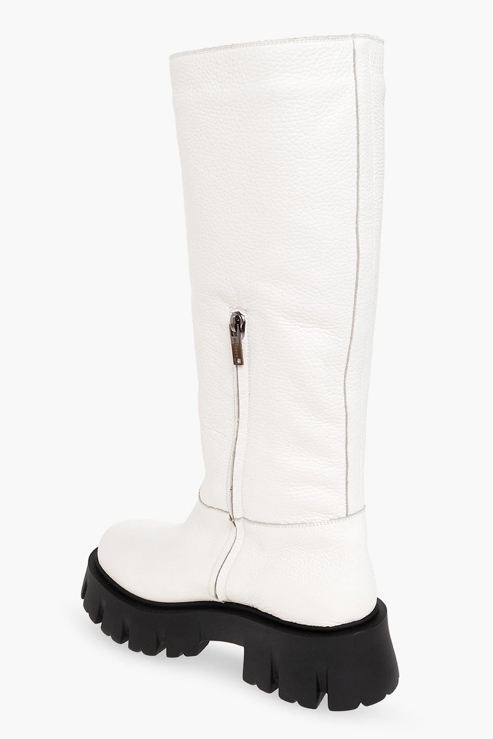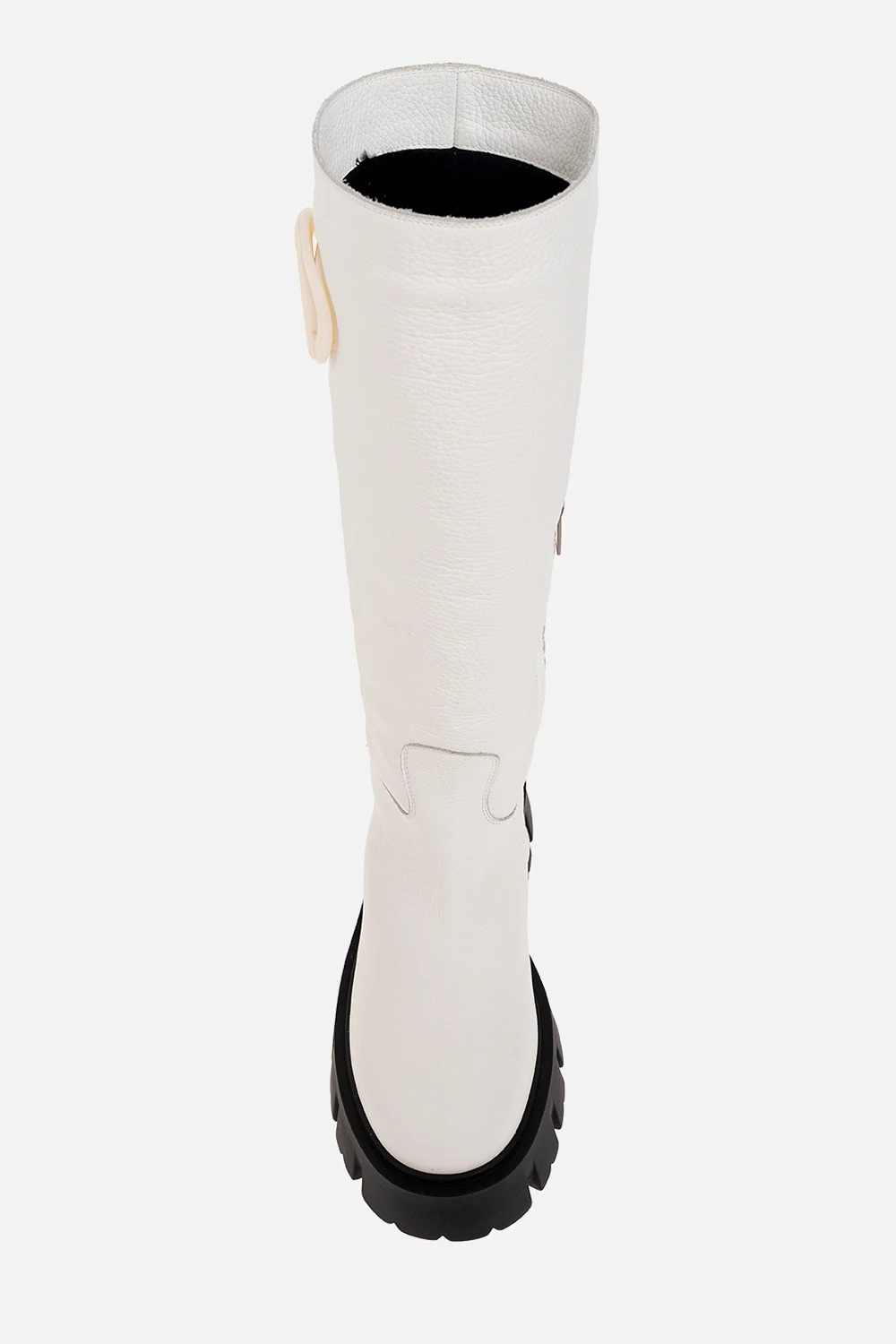 White boots from Iceberg. Crafted from leather, this model sits on a black rubber sole and features a side zipper and a logo application.