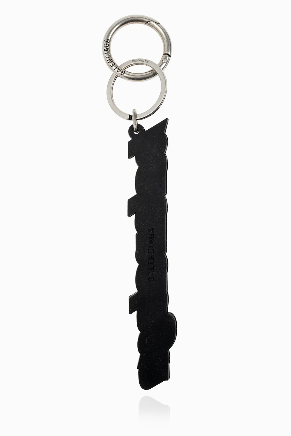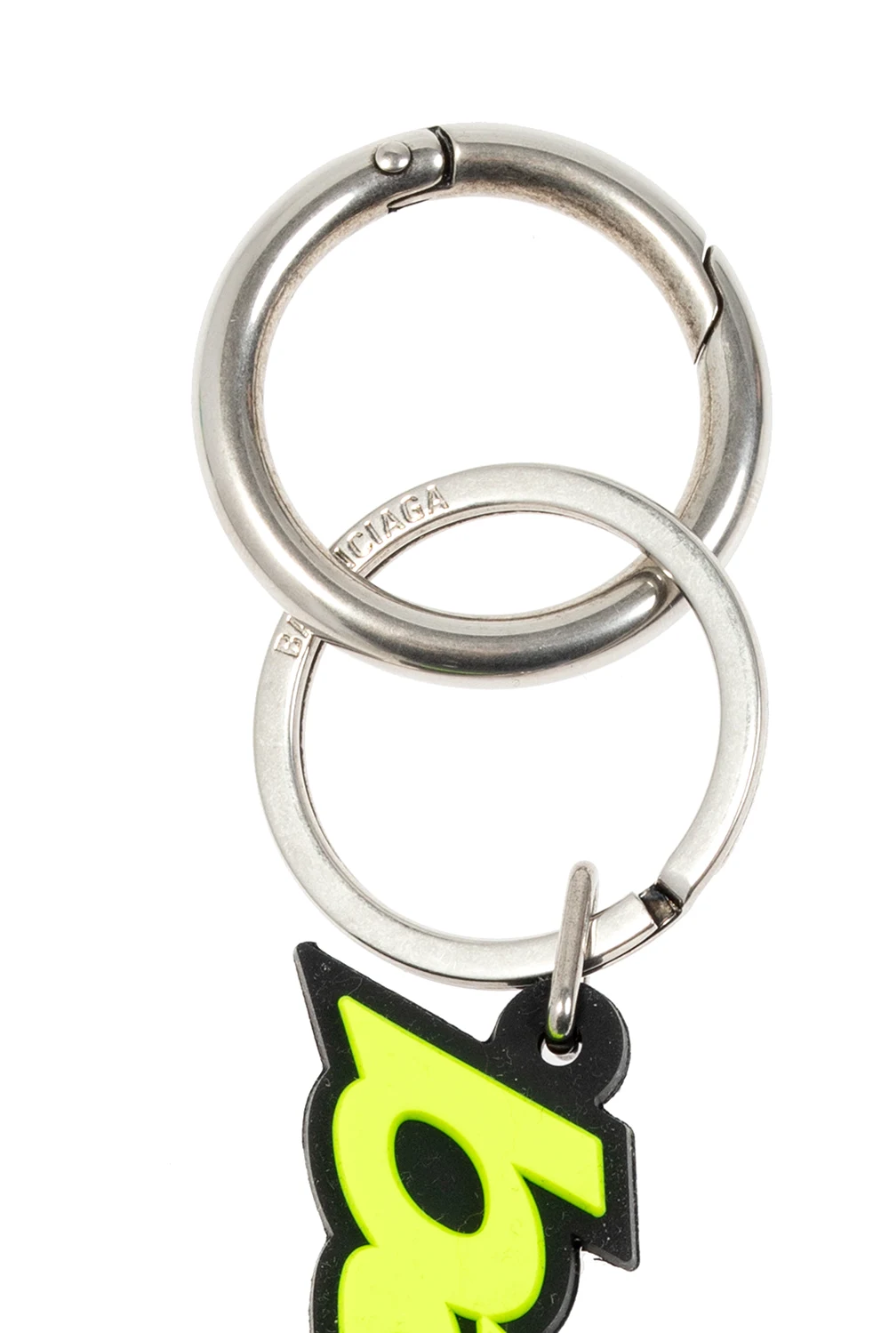 Silver-tone keyring from Balenciaga. Made in metal, this item comes with a green and black rubber charm.