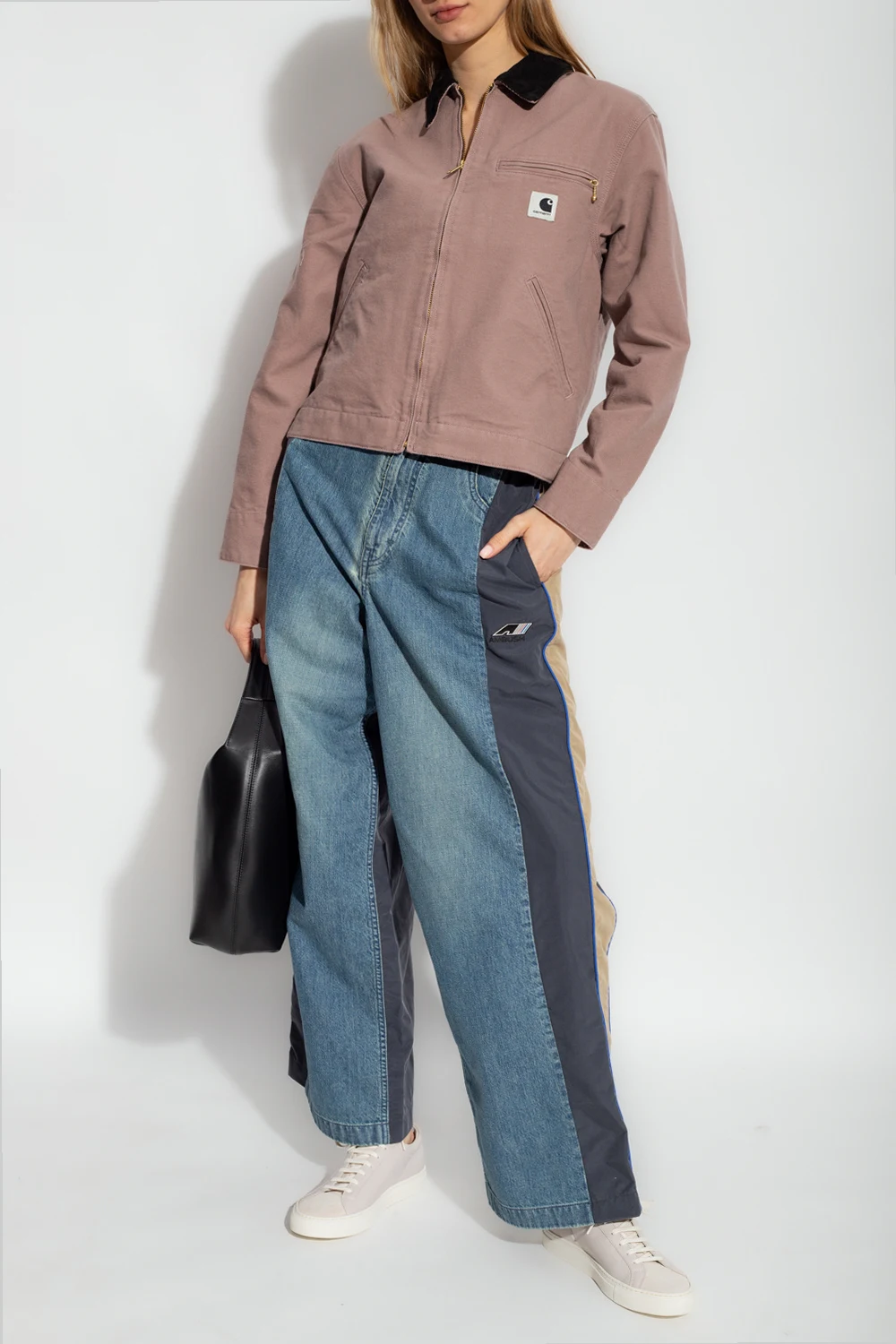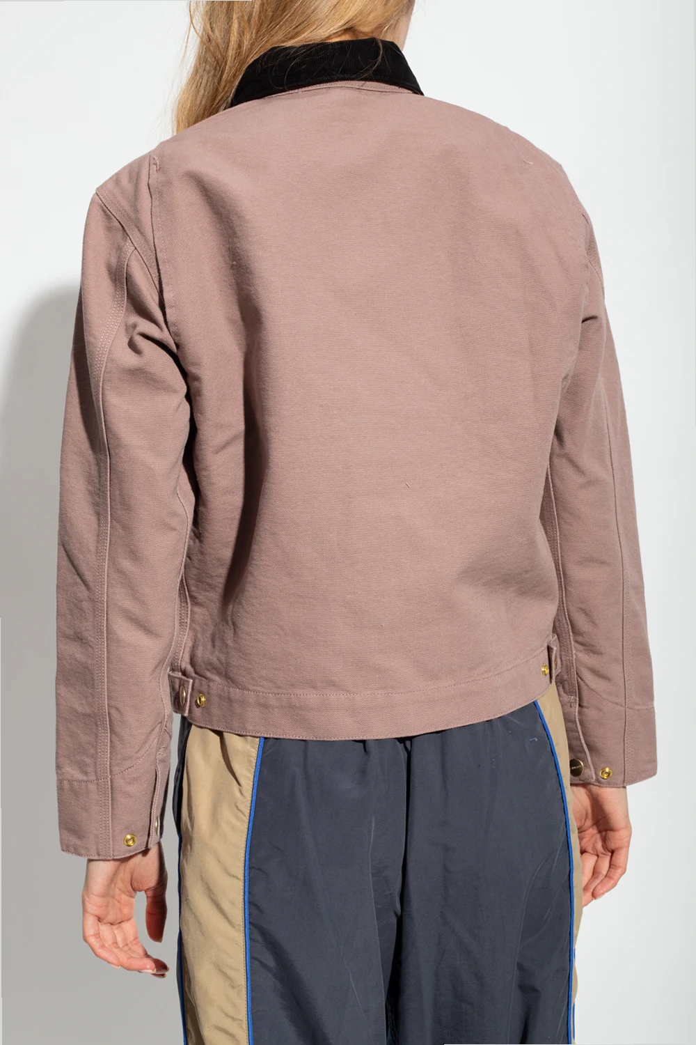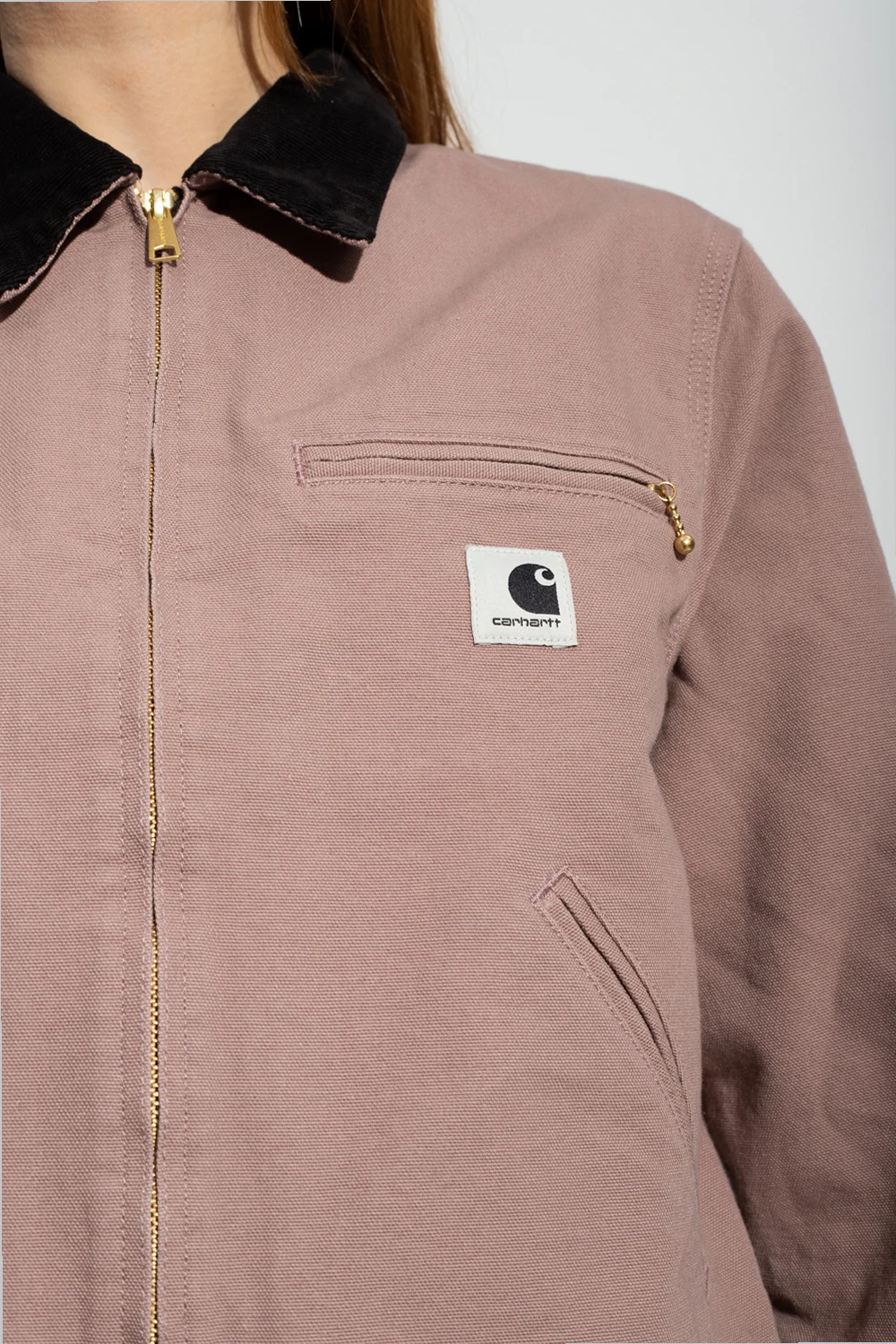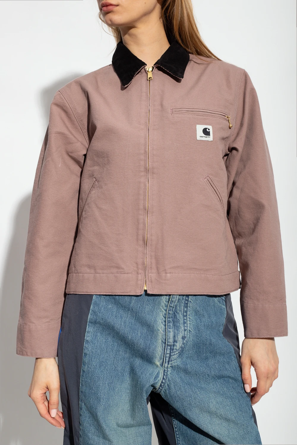 Purple and black jacket from Carhartt. Crafted from organic cotton, this design features a zip fastening, white and black logo patch, two slip pockets, one zip pocket, long sleeves and corduroy collar.