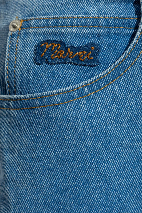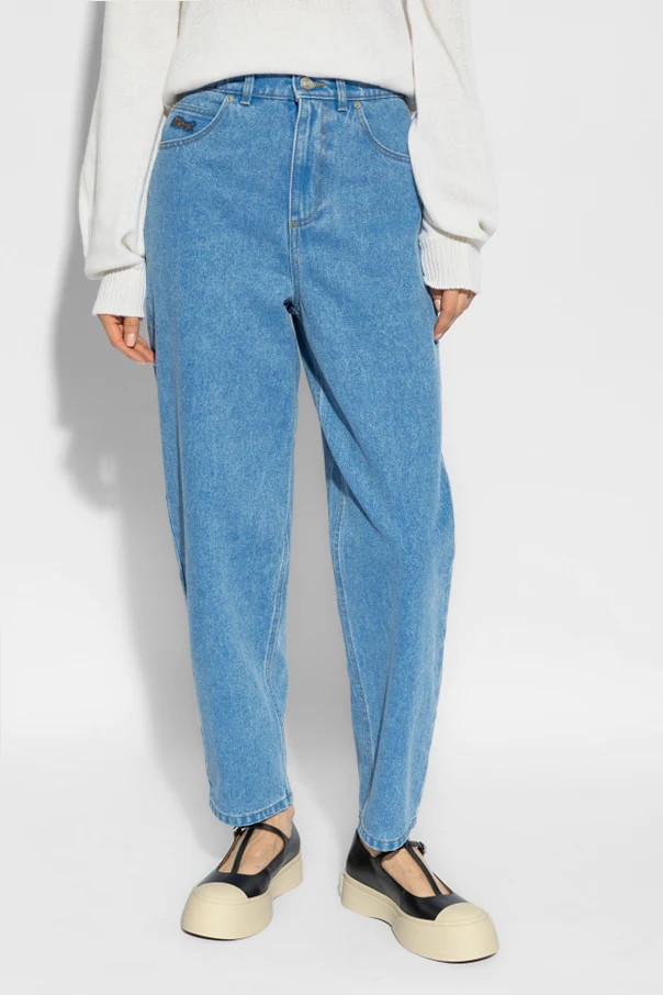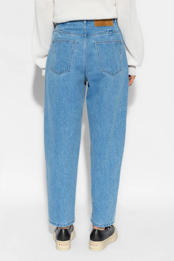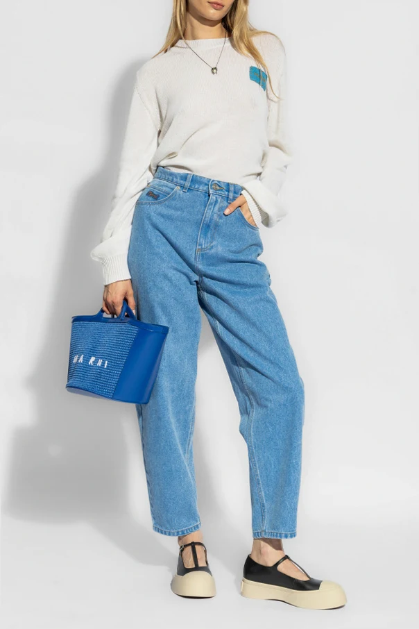 Embrace the epitome of vintage elegance with Marni's Loose-Fit Jeans , a testament to classic style and enduring quality. Crafted from 100% cotton, these jeans feature a mesmerizing array of blue hues, achieved through sophisticated stone washing techniques that lend each pair a unique, lived-in aesthetic. The fabric's durability is highlighted by the iconic golden-yellow stitching, synonymous with premium denim craftsmanship. The relaxed silhouette of these jeans offers both comfort and a flattering drape, ensuring a timeless addition to your wardrobe. Attention to detail is evident in the distinctive branding elements: a patch on the front pocket and a leather label on the back, both adorned with the prestigious Marni logo in shades of gold and blue, signaling the jeans' exclusive lineage. Designed for the discerning fashion enthusiast, these jeans feature a button and zip closure, and are equipped with five practical pockets, blending functionality with high fashion. The clean and uncomplicated design, devoid of unnecessary embellishments, underscores the jeans' sophisticated simplicity. Why Choose These Jeans? Unmatched quality and durability of 100% cotton fabric. Unique stone-washed coloration for a distinctive look. Loose fit for ultimate comfort and style. Exquisite branding details that highlight the luxury and exclusivity of Marni. Functional design with five pockets , ensuring practicality without compromising elegance.