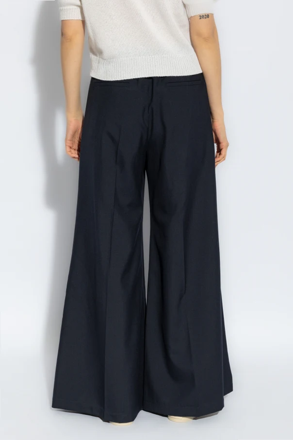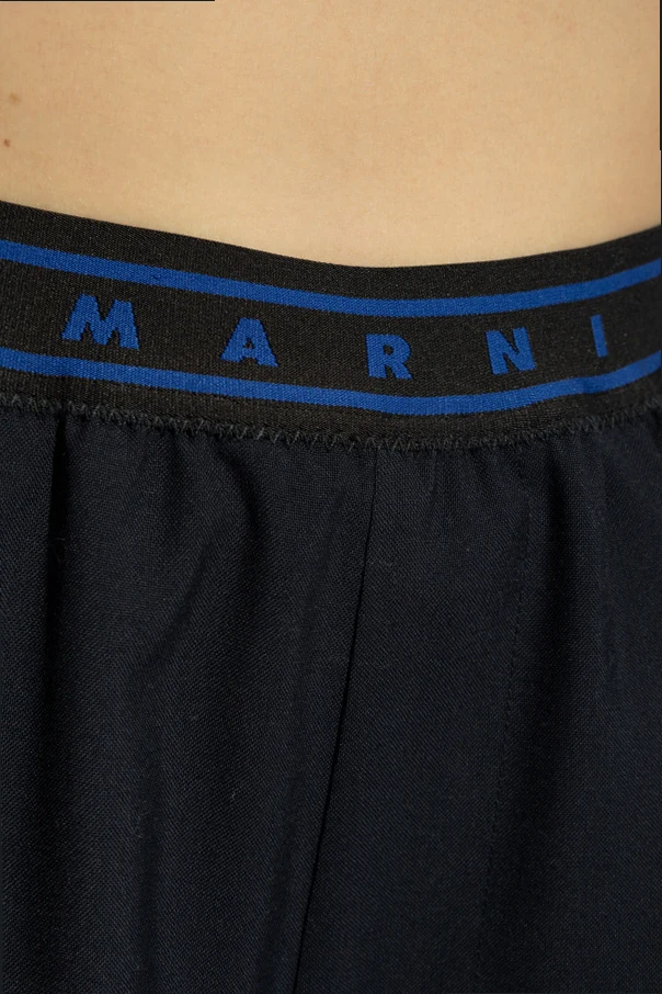 Experience refined sophistication with these wool culotte trousers from Marni , a distinguished name in Italian luxury fashion. Rendered in a rich brown hue, their minimalist silhouette—straight cut with a subtle flare and cropped just above the ankle—offers a contemporary nod to timeless tailoring. The high-rise is elegantly accentuated by a broad waistband and discrete belt loops, lending a sculpted yet comfortable fit.
