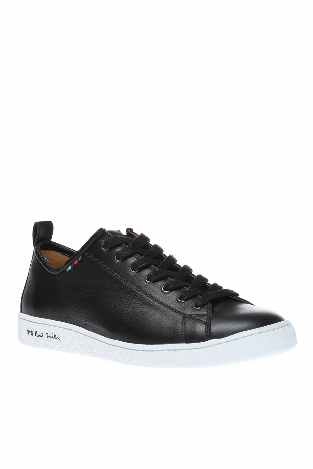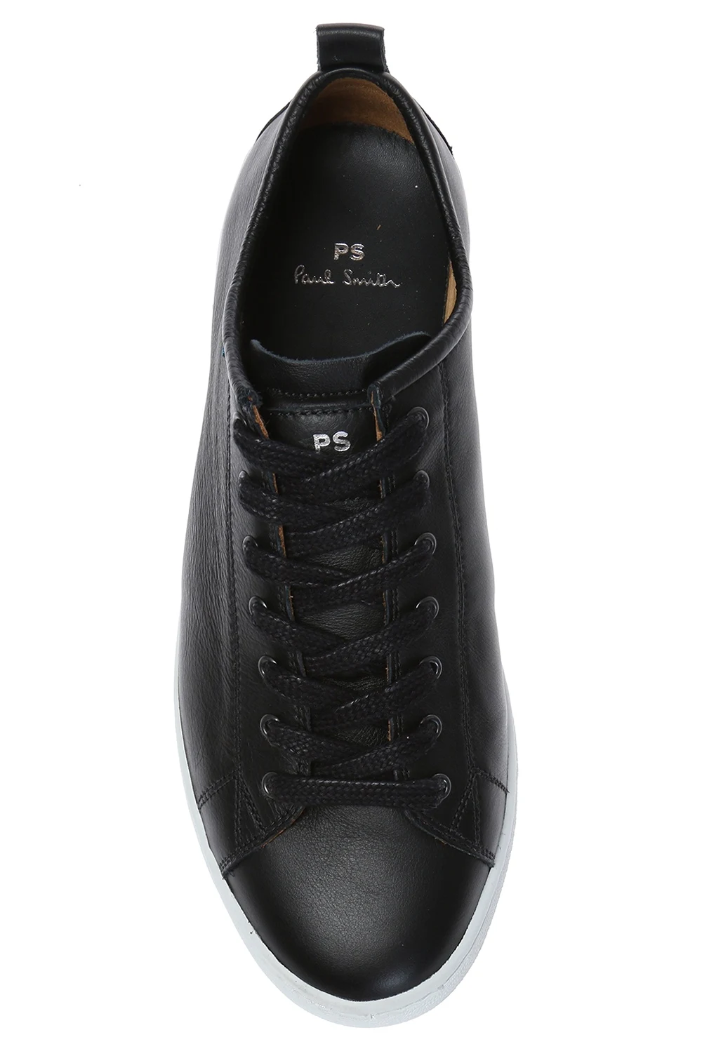 Black 'Miyata' lace-up sneakers from PS Paul Smith. Made of leather. White rubber sole decorated with embossed black logo.