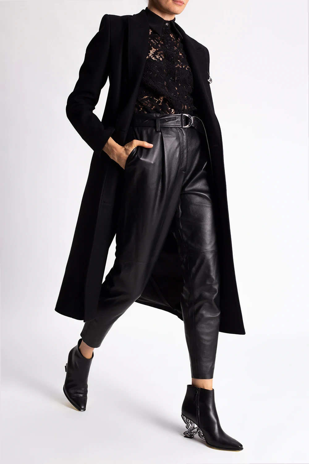 BLACK Double-breasted coat