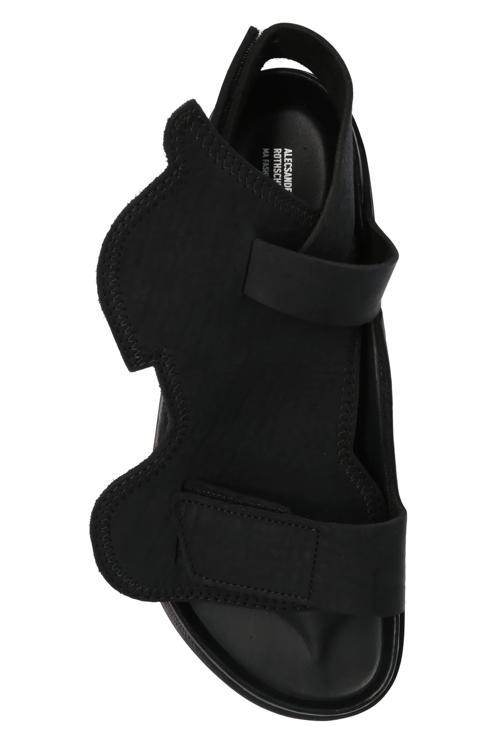 Black ‘Bukarest’ sandals from Birkenstock x CSM. Crafted from leather, this pair sits on a brown and black leather sole and features an adjustable velcro closure and a removable decorative shield.