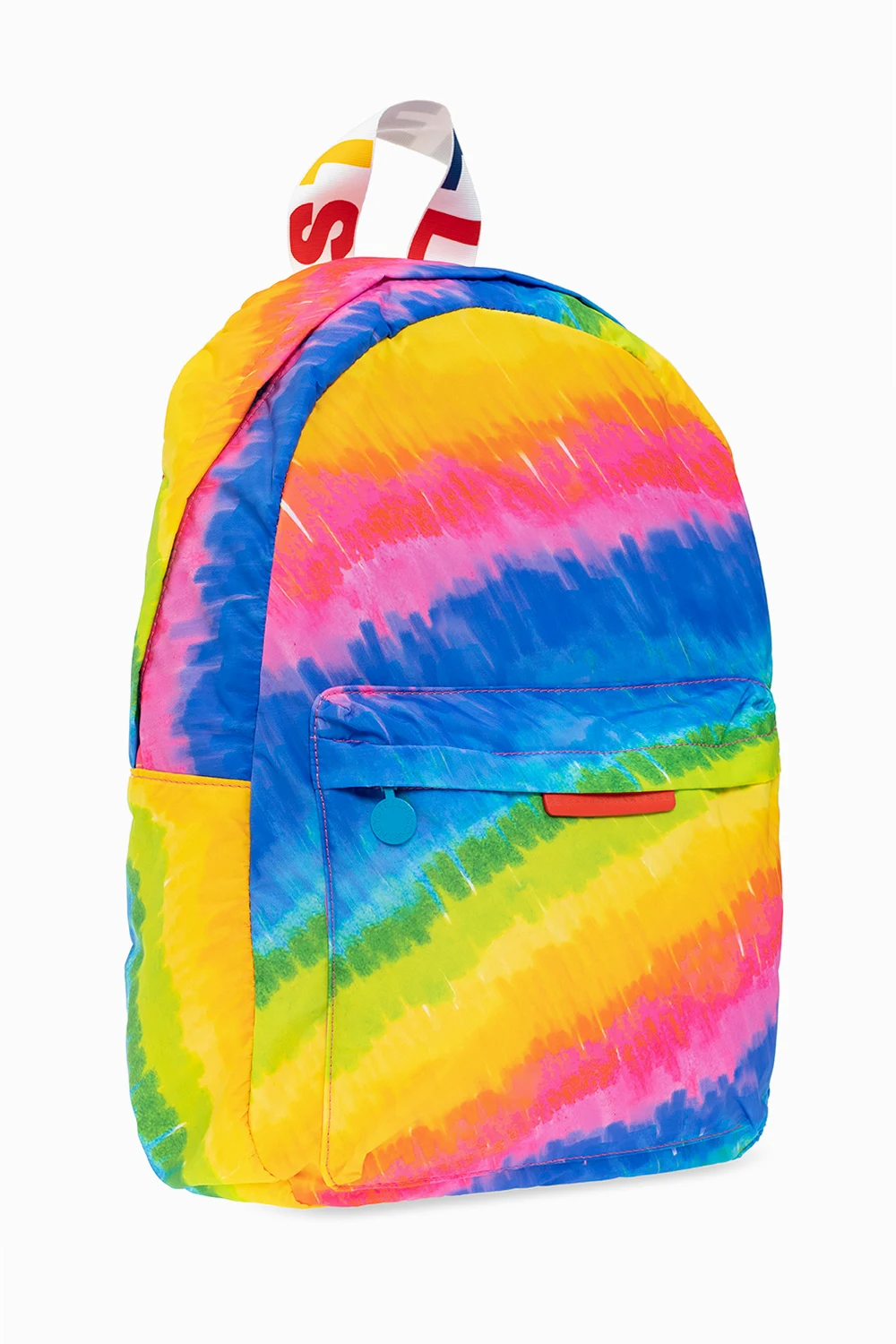 Multicolored backpack from Stella McCartney Kids. Made of recycled fabric, this model features a two-way zip, front pocket with a zip, logo patch, half-round handle, adjustable shoulder straps and one internal compartment.