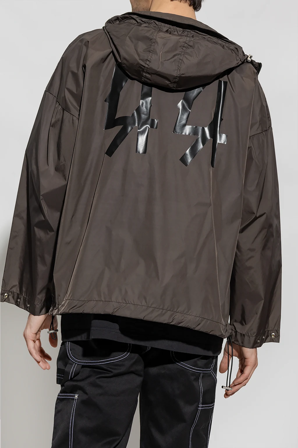 Dark grey jacket from 44 Label Group. Printed with the brand's logo in black, this style features a zip fastening, two slip pockets, a drawcord-adjustable hem and long sleeves with elasticated cuffs.