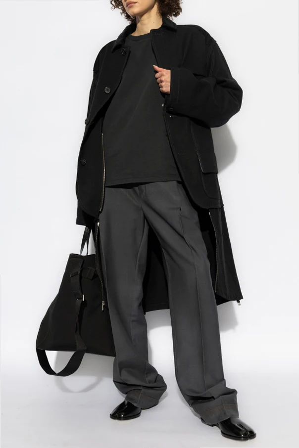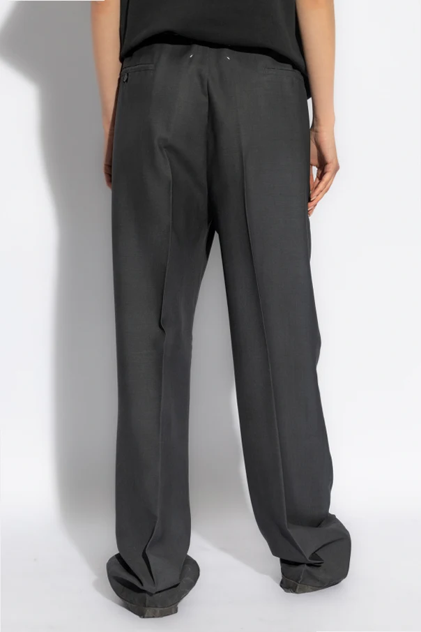 Introducing the Maison Margiela Tailored Pants , an epitome of sartorial elegance from the prestigious Maison Margiela collection. Crafted from a luxurious blend of mohair and wool, these black tailored trousers exude sophistication with their classic straight cut and immaculate crease.