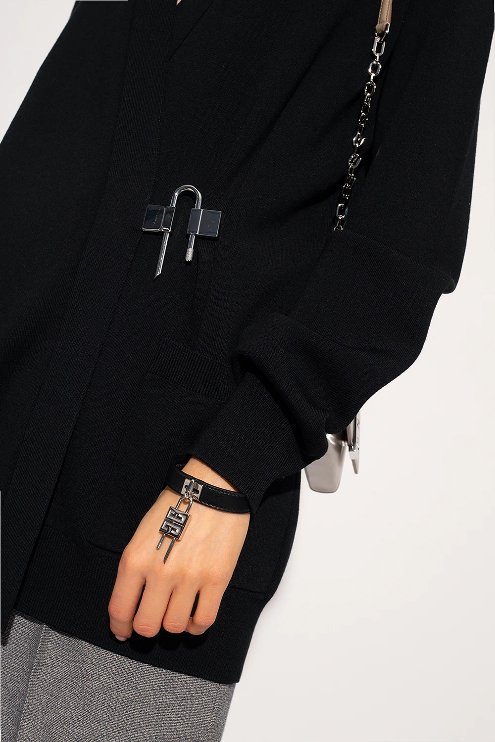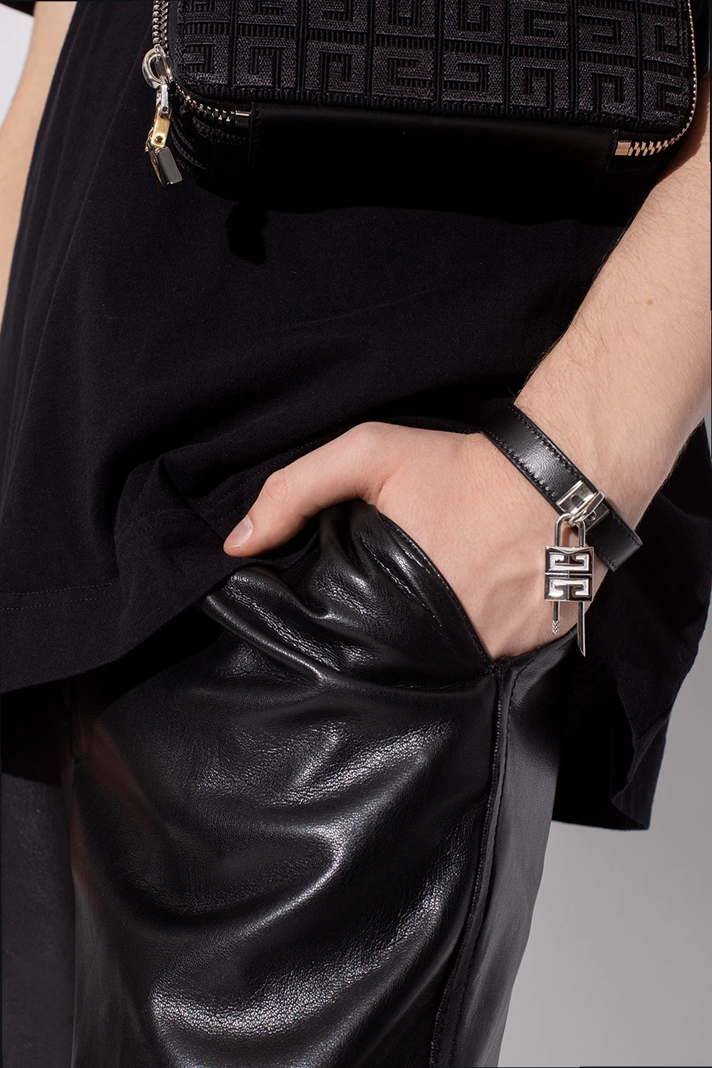 Black bracelet from Givenchy. Made of leather and brass, this model features adjustable closure and ‘4G’ padlock with silver-tone.