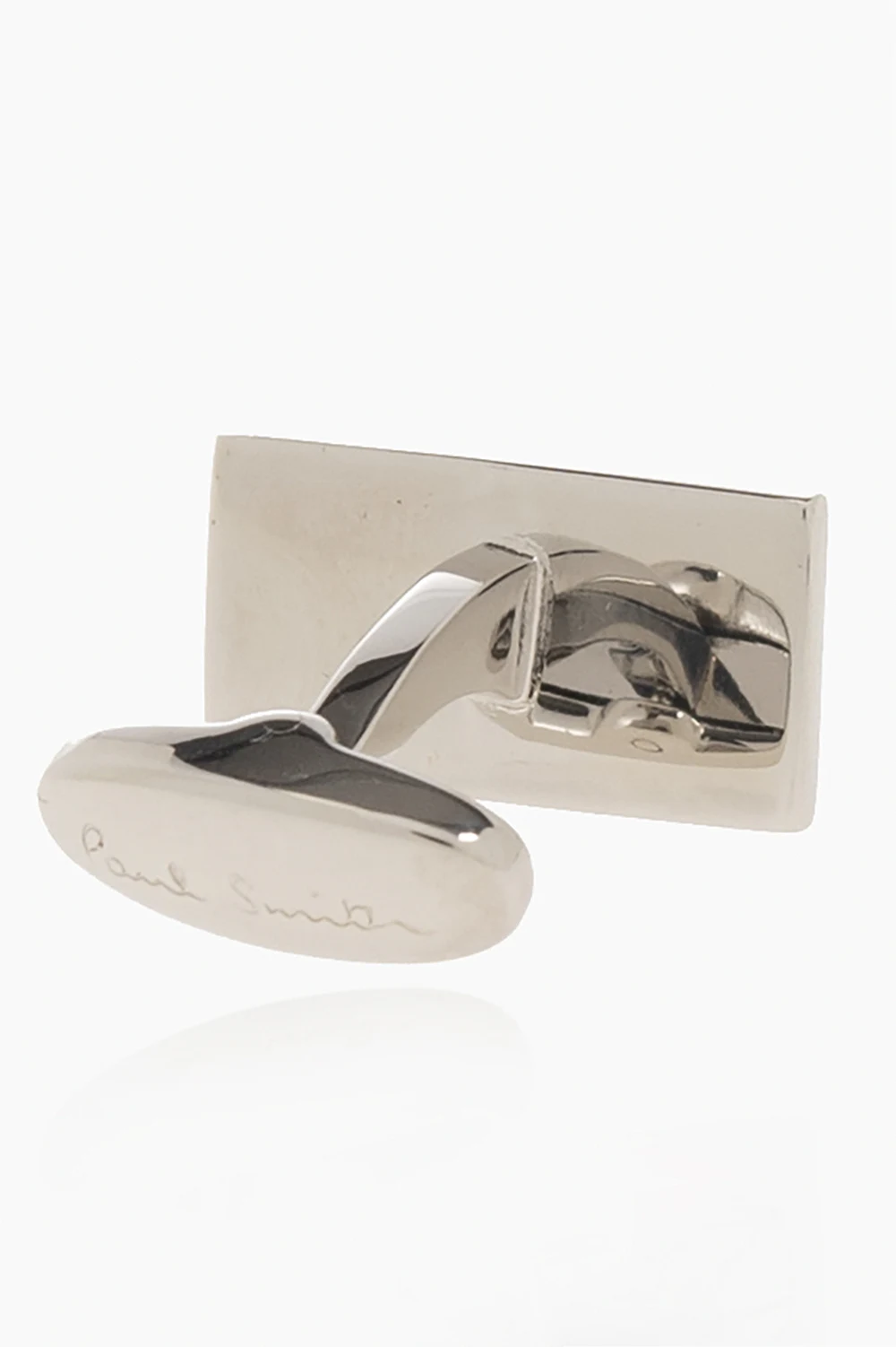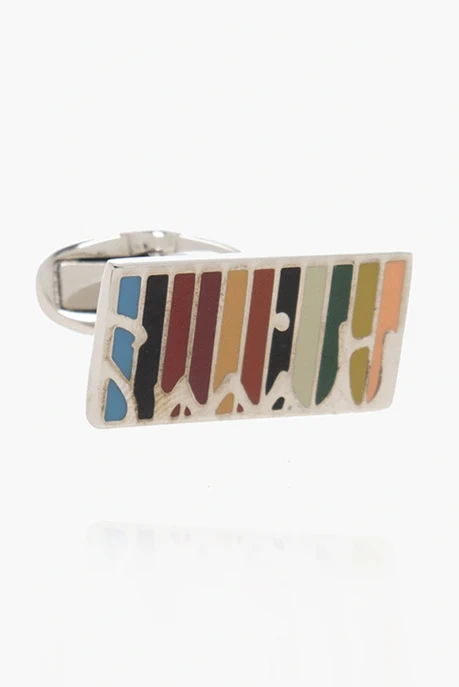 Rectangular cufflinks from Paul Smith. Made of silver-tone copper, these items feature an engraved logo and a colourful enamel finish.