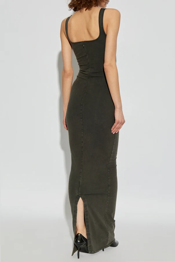 Introducing the Square Neck Maxi dress by the illustrious ENTIRE STUDIOS, a paragon of modern elegance and understated sophistication. This long dress, crafted from a luxurious blend of organic cotton and elastane, presents a figure-hugging silhouette that accentuates the natural contours of the body. The design features a distinctive square neckline and wide straps , providing a contemporary aesthetic while ensuring ease and comfort. Rendered in a deep, versatile hue, this dress emanates timeless elegance suitable for myriad occasions. A discreet slit at the back enhances movement, making it as practical as it is stylish. The fabric’s smooth and elastic nature promises unparalleled comfort, allowing you to glide through your day with grace and confidence. The minimalist yet chic design ensures it remains a staple in your wardrobe. Why Choose This Product? Crafted from high-quality organic cotton and elastane Features a modern square neckline and wide straps Elegant dark shade for versatile styling Discreet back slit for enhanced movement Designed by the renowned ENTIRE STUDIOS