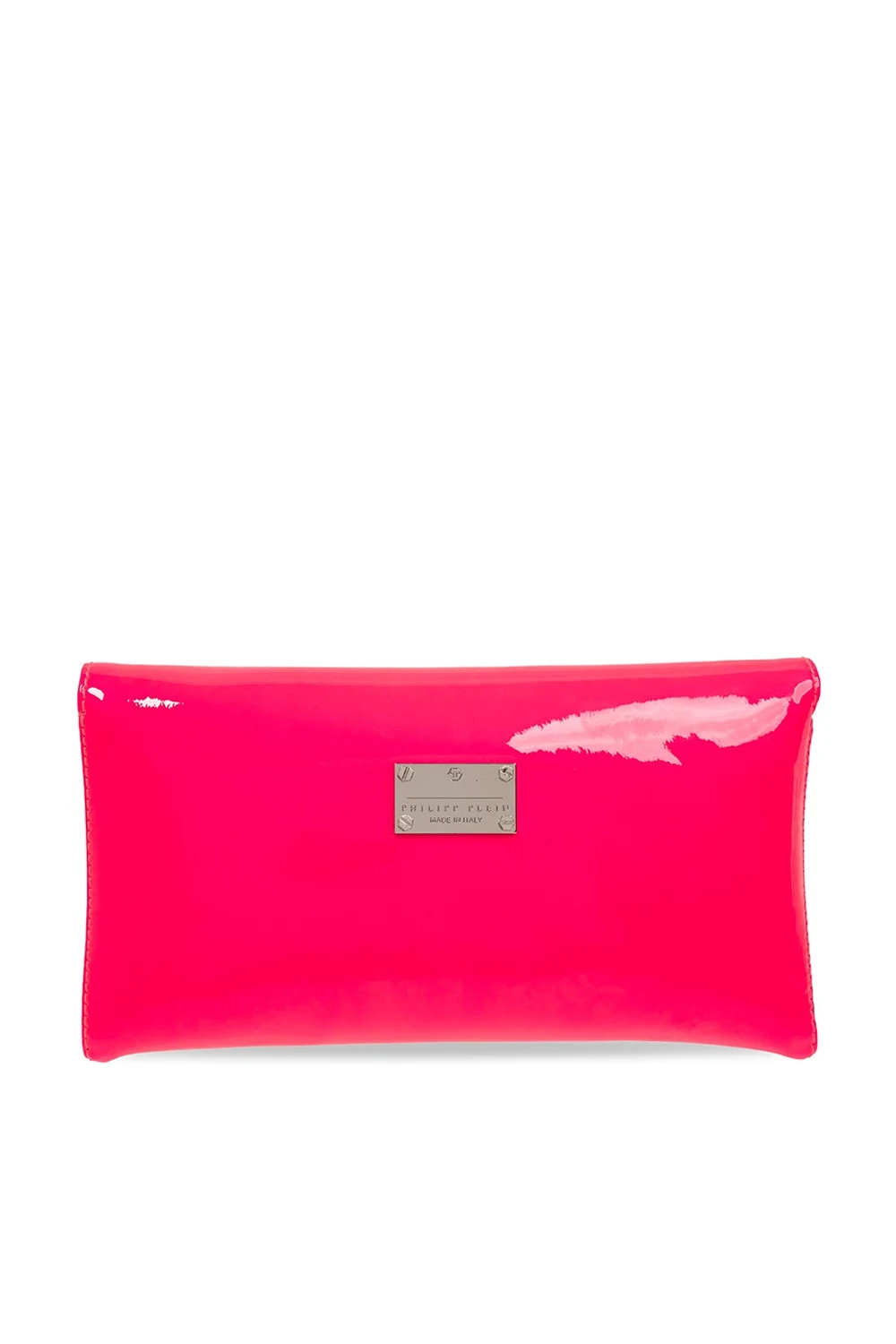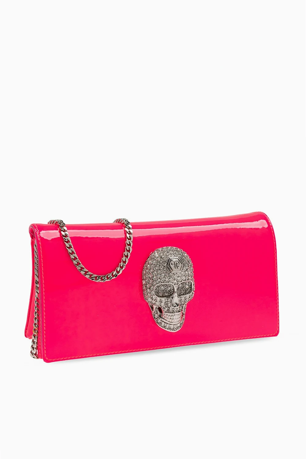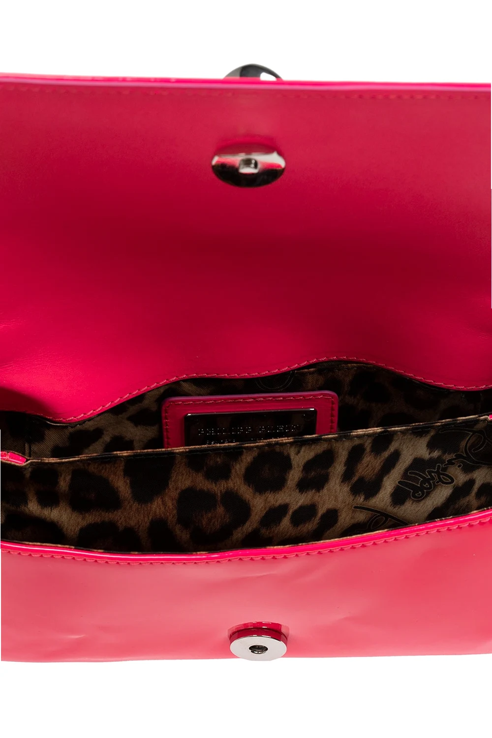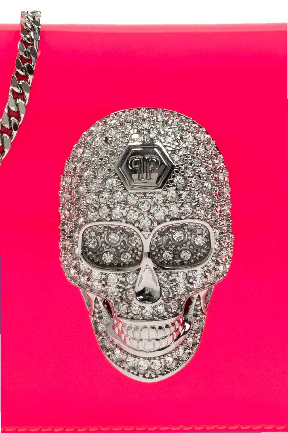Pink shoulder bag from Philipp Plein. Crafted from leather, this design features a magnetic snap fastening, decorative logo appliqué, chain shoulder strap, silver-tone metal hardware and two internal compartments with one slip pocket.