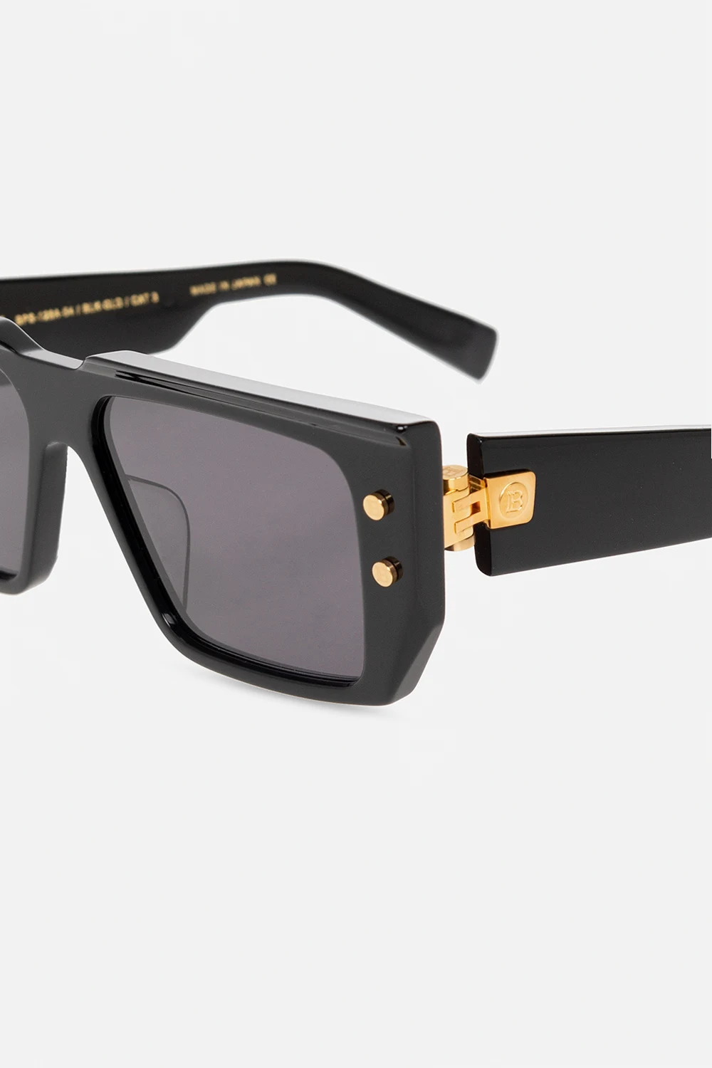 Black ‘B-VI’ sunglasses from Balmain. This pair has rectangular frames, gold-tone elements with a logo and grey lenses with anti-reflective coating and 100% UV protection. Comes with a case.