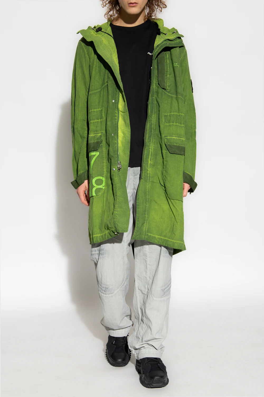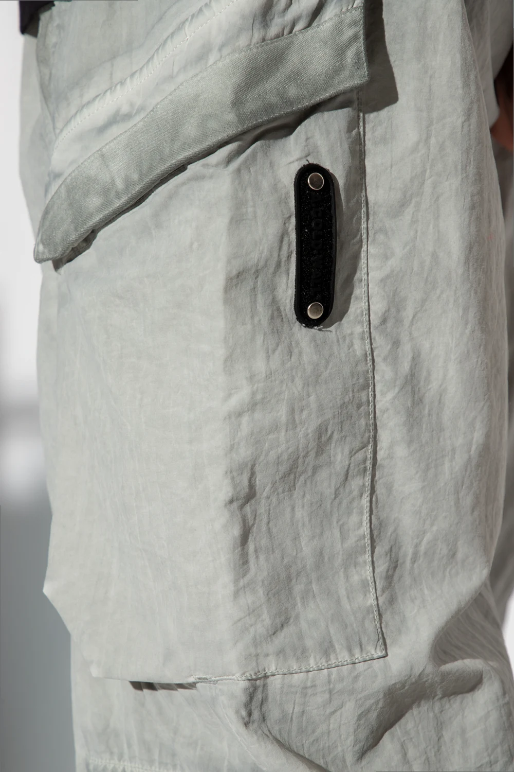 Grey cargo trousers with a vintage effect from A-COLD-WALL*. Emblazoned with a logo print and patch, this pair falls with straight legs and features a drawstring waistband and cuffs and six snap-fastened pockets (two flapped ones).