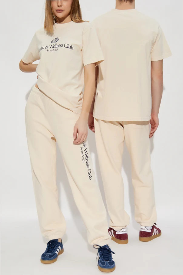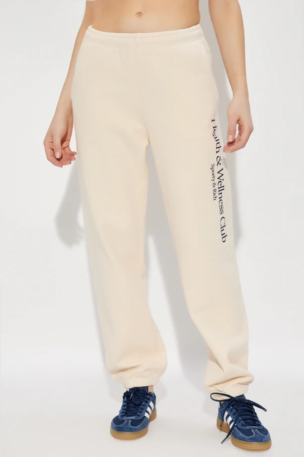 Introducing the Preppy Collection Sweatpants by Sporty & Rich , an epitome of casual elegance. Crafted from luxurious 100% cotton, these unisex sweatpants boast a creamy hue that exudes sophistication and versatility. The soft fabric ensures unparalleled comfort, making them ideal for everyday wear. Designed with a loose fit , these sweatpants feature an elastic waistband and cuffed ankles, ensuring a relaxed yet refined silhouette. A back pocket adds a touch of practicality, perfect for casual city strolls or lounging. The subtle yet striking "Health & Wellness Club" and "Sporty & Rich" inscriptions on one leg provide a distinctive contrast, highlighting the garment's unique character. This piece embodies the brand's ethos of timeless sportswear infused with understated luxury. Why Choose This Product? Exquisite 100% cotton for ultimate comfort Elegant and versatile creamy shade Unique branding with bold inscriptions Functional design with a back pocket