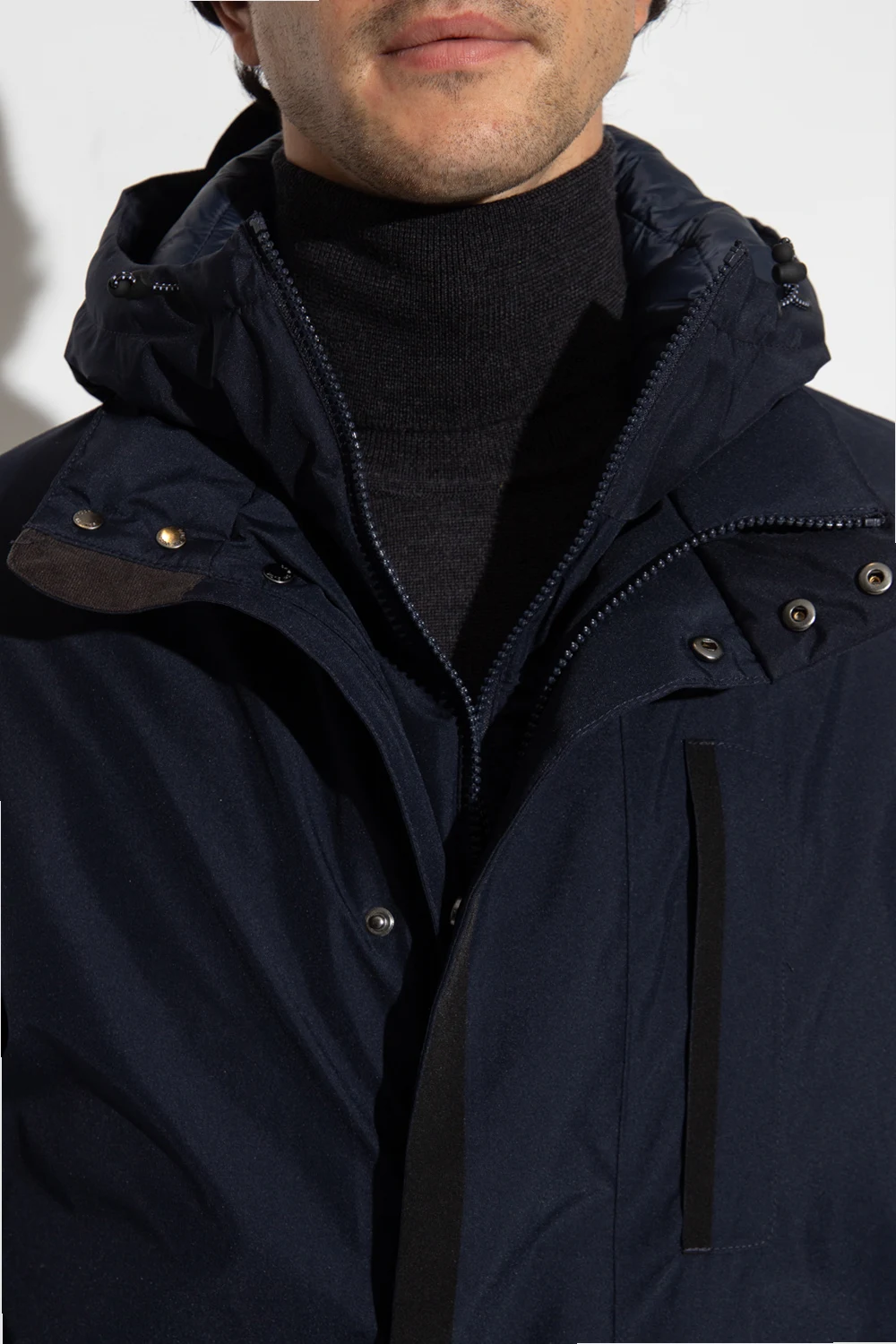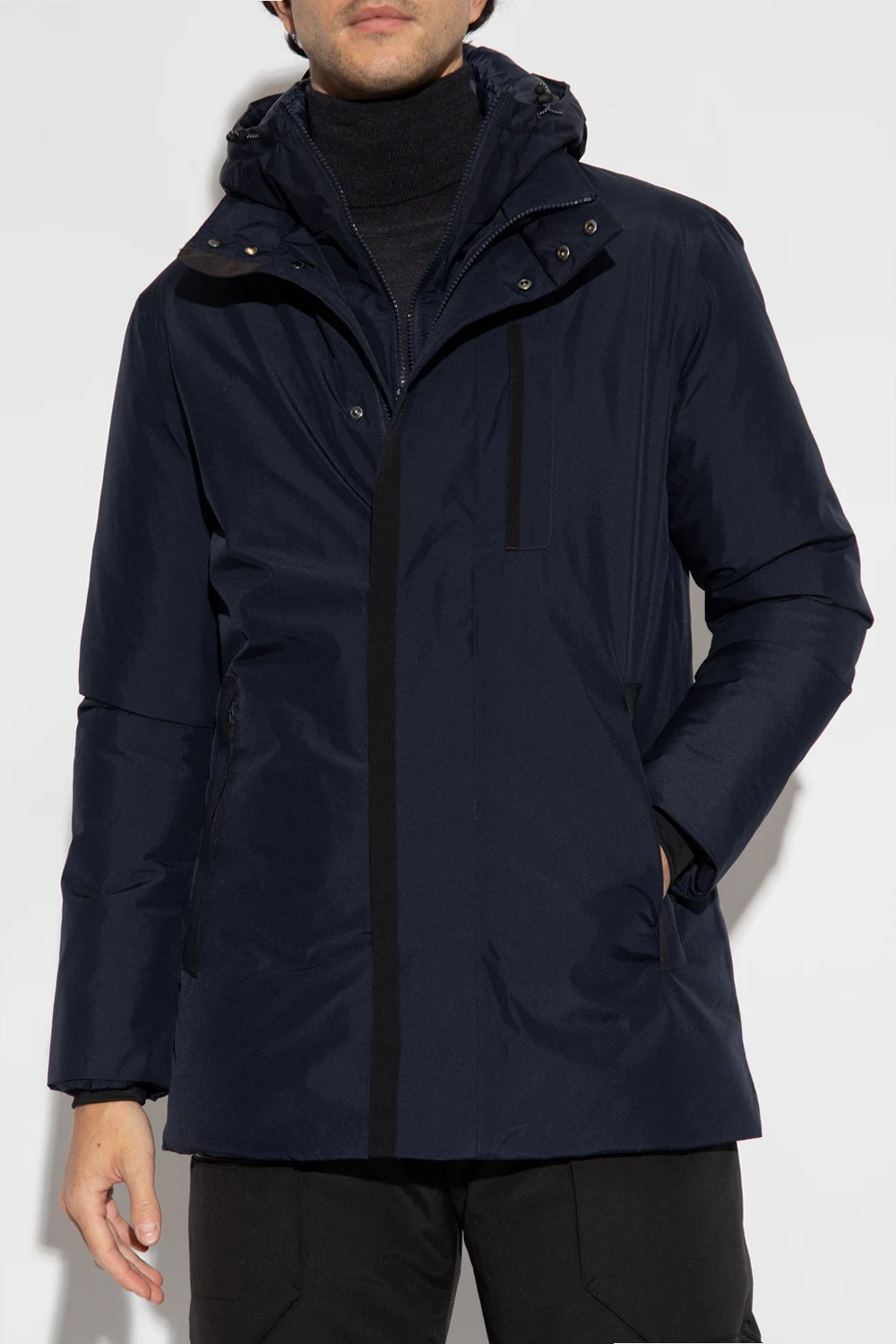 Navy ‘Phipps’ jacket from Save The Duck, the ‘Pro-Tech’ line. Crafted from recycled fabric with a Gore-Tex® membrane, this breathable, wind and water-resistant jacket features synthetic Gore-Tex® down padding, two-way zip and snap fastenings, logo patch at the back and three zip pockets. Temperature range: from -10°C to 14°C.